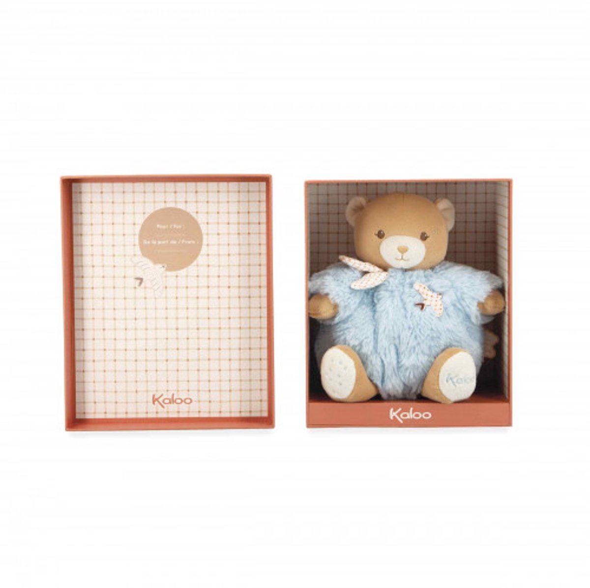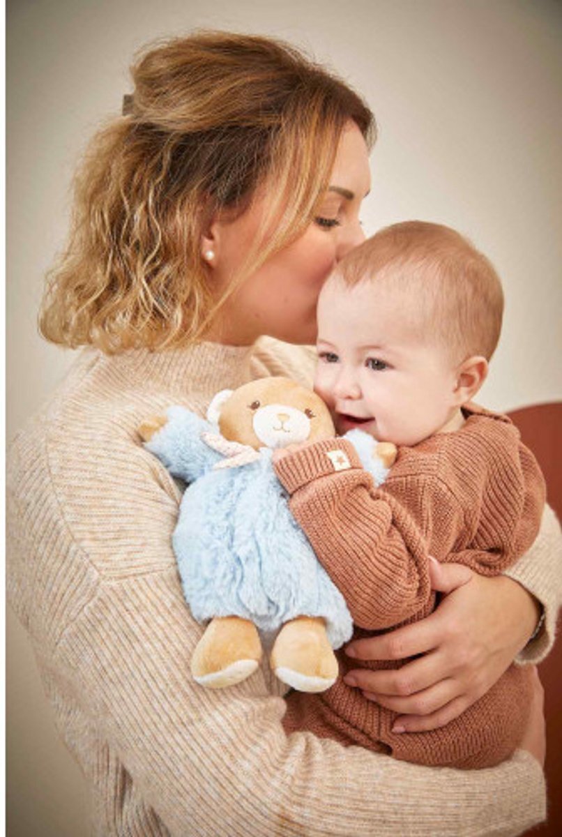 Medvedík, ktorý je rovnako mäkký ako štedrý! S výškou 17 cm a množstvom prepracovaných detailov je tento medvedík ideálny pre bábätká od narodenia. Jeho srsť ponúka bezkonkurenčnú mäkkosť! Bábätko môže svojho nového plyšového kamaráta ľahko držať za uši. Okrem priateľskej tváričky má tento medvedík neuveriteľne mäkké a nadýchané bruško, ideálne na maznanie. Modrý medvedík je ozdobený detailmi, ktoré mu dodávajú rozhodne nadčasový štýl. Lastovička, synonymum obnovy a sviežosti, krásna kockovaná potlač na srdiečku a stuhy okolo krku. Tento modrý plyšový medvedík sa dodáva v krásnej zodpovedajúcej darčekovej krabičke, ktorú je možné prispôsobiť vďaka vložke pod vekom. Krabičku je možné znovu použiť ako úložný box alebo na uloženie vzácnych suvenírov pre bábätko. Tento mimoriadne mäkký medvedík Kaloo je ideálnym darčekom pre novorodenca. Rodičia budú mať pokoj v duši s vedomím, že sa o ich dieťatko tak dobre stará. Je starostlivo vyrobený z 95 % recyklovaných materiálov (syntetická kožušina, mikrovelúr, poplín) vrátane výplne z recyklovaného polyesteru. Tento modrý plyšový medvedík Patapouf sa dá prať v práčke pri teplote 30 °C.