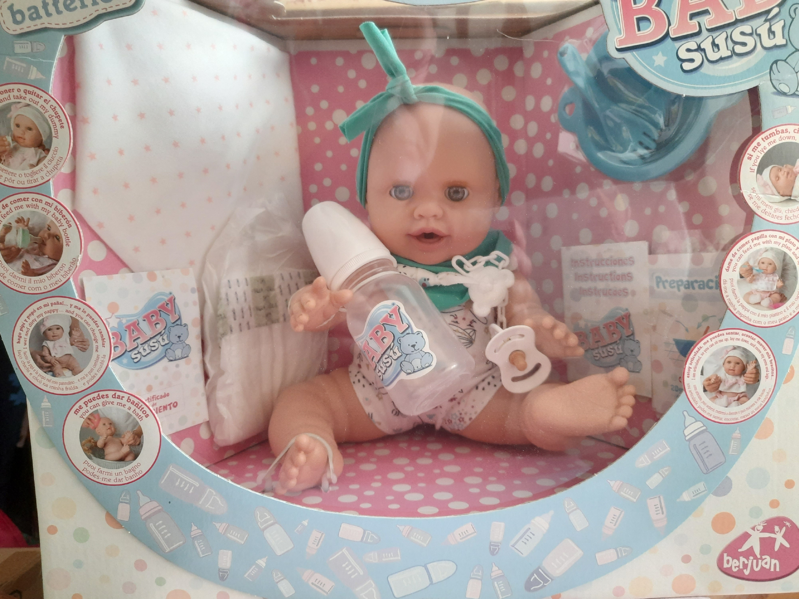 Baby Susú je kolekce panenek s mechanickým strojkem, které nepotřebují baterie. S panenkou Baby Susú si užijete nekonečnou zábavu a zároveň pomůžete životnímu prostředí. Každá panenka je dodávána s příslušenstvím, jako je lahvička, muchláček/dečka, plenka a oblečení, dále bryndáček, rodný list, dudlík, talíř a příbor. Můžete ji krmit z lahvičky nebo jí dávat dětskou výživu (která je součástí balení). Když jí zvednete ručičku, bude čůrat a kakat. Panenku je možné koupat. Když ji položíte, zavřou se jí oči.