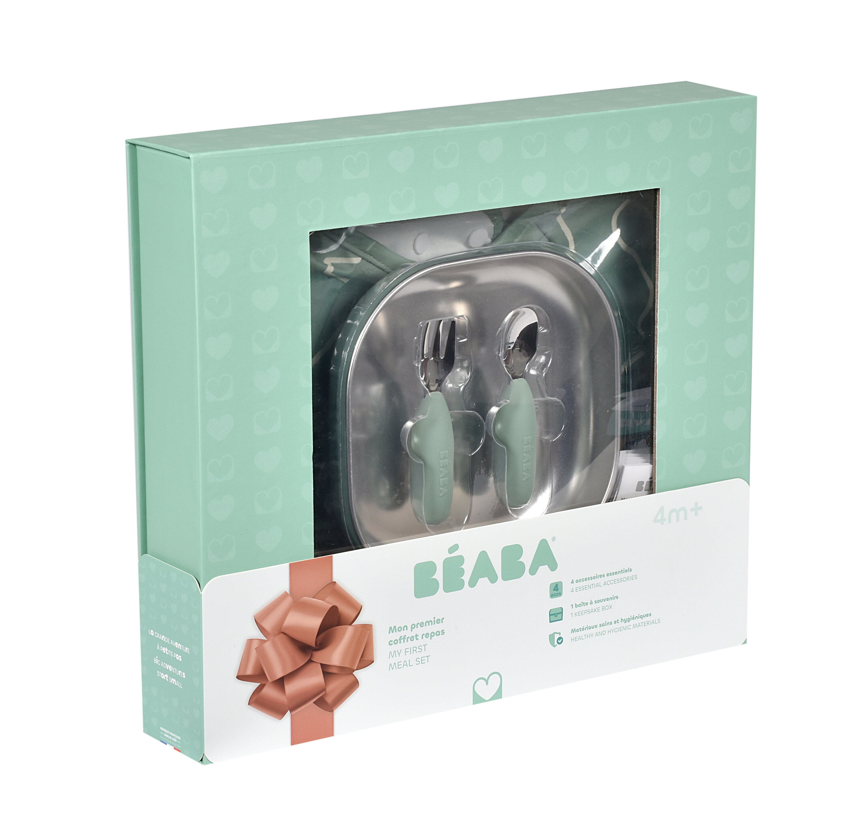 Lyžička a vidlička boli vyvinuté v spolupráci so špecialistom na detské kŕmenie. Krátka, zaoblená rukoväť sedí do malých rúčok, plytká lyžička pomáha naberať primerané množstvo a vidlička so zaoblenými hrotmi je úplne bezpečná. Kombinácia silikónu a nerezu robí z príboru dlhodobého pomocníka na rozvoj samostatnosti.