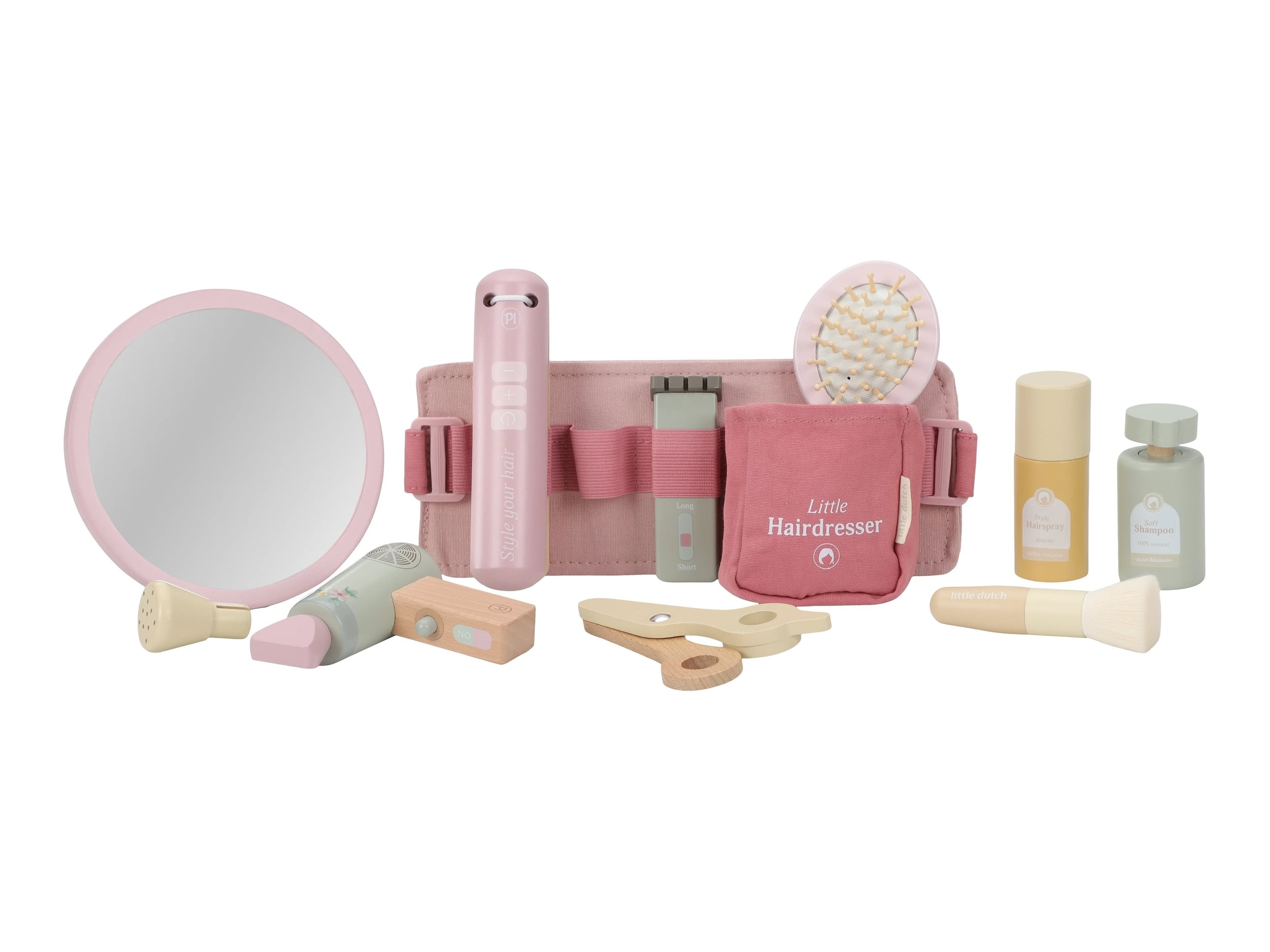 Strihanie, fúkanie a vytváranie účesov ako u skutočného kaderníka, to všetko prináša deťom táto kúzelná drevená sada Little Dutch. Nájdu v nej všetko, čo potrebujú na otvorenie vlastného salónu krásy pre bábiky, súrodencov i kamarátov. Kto bude prvý zákazník?