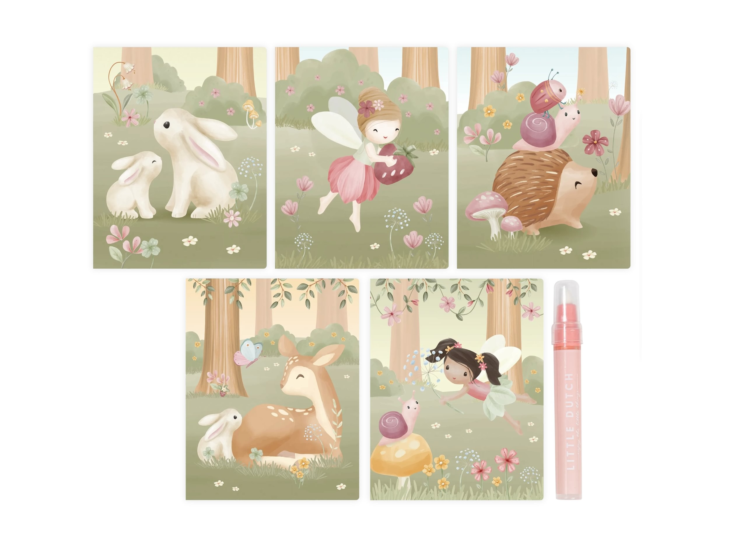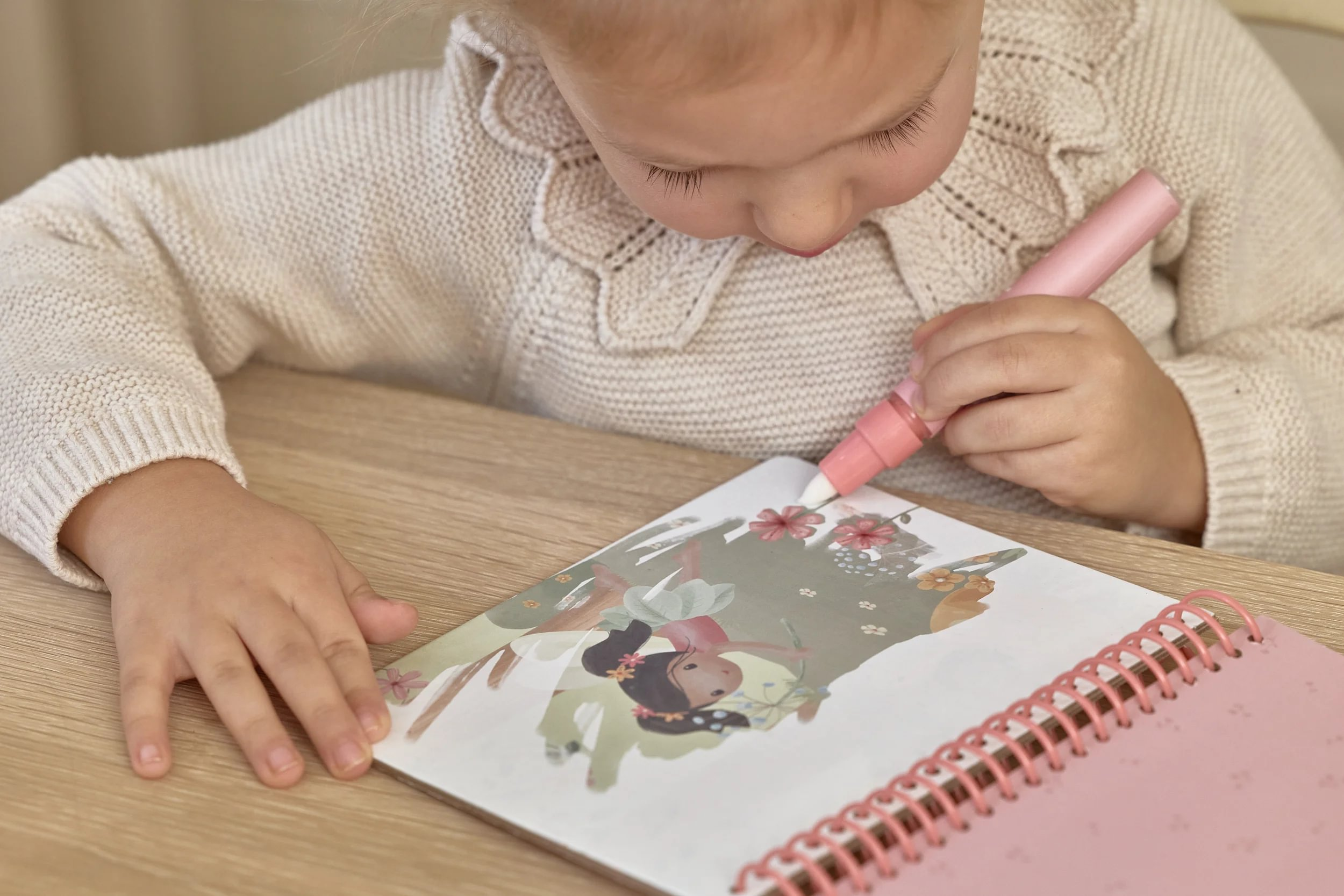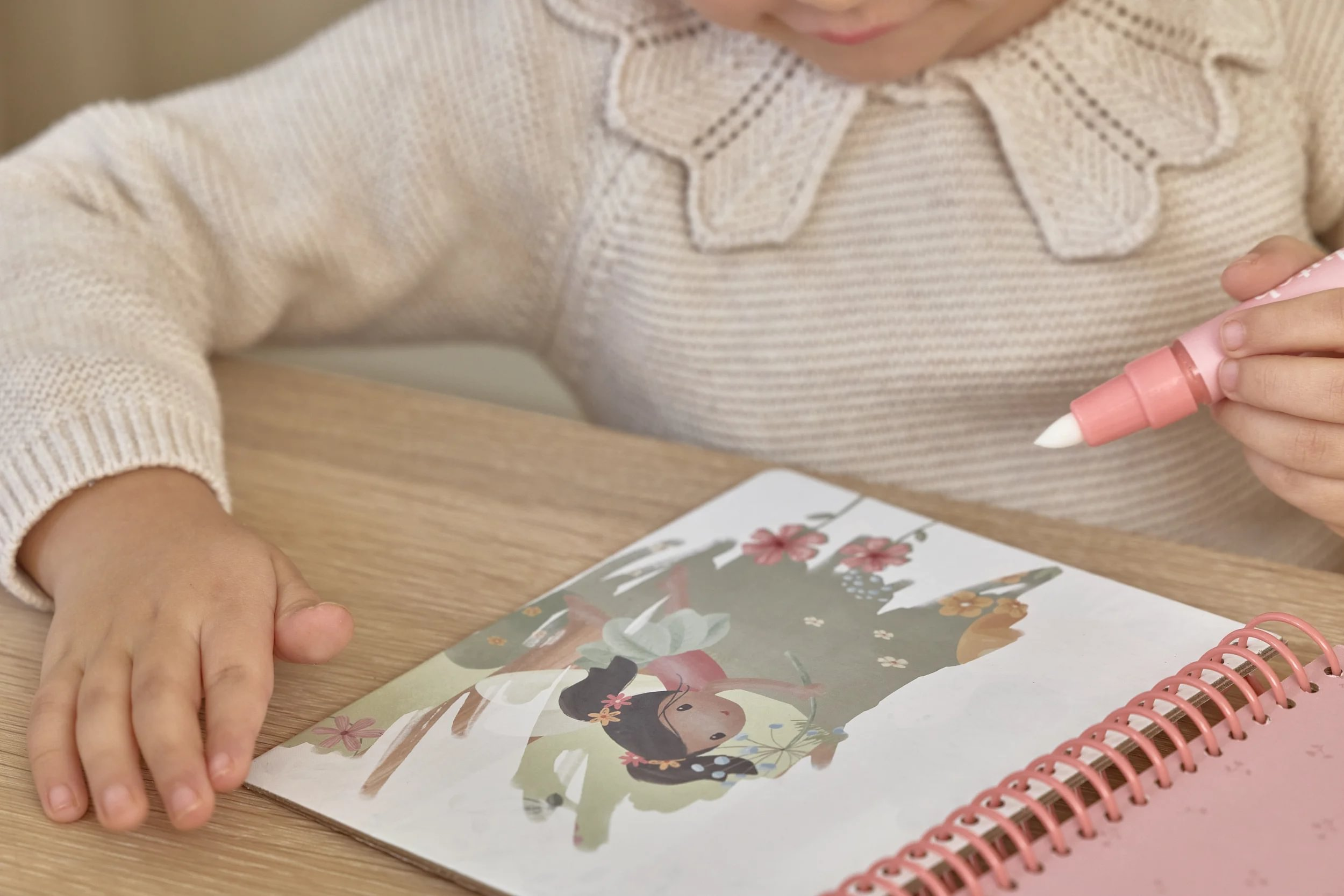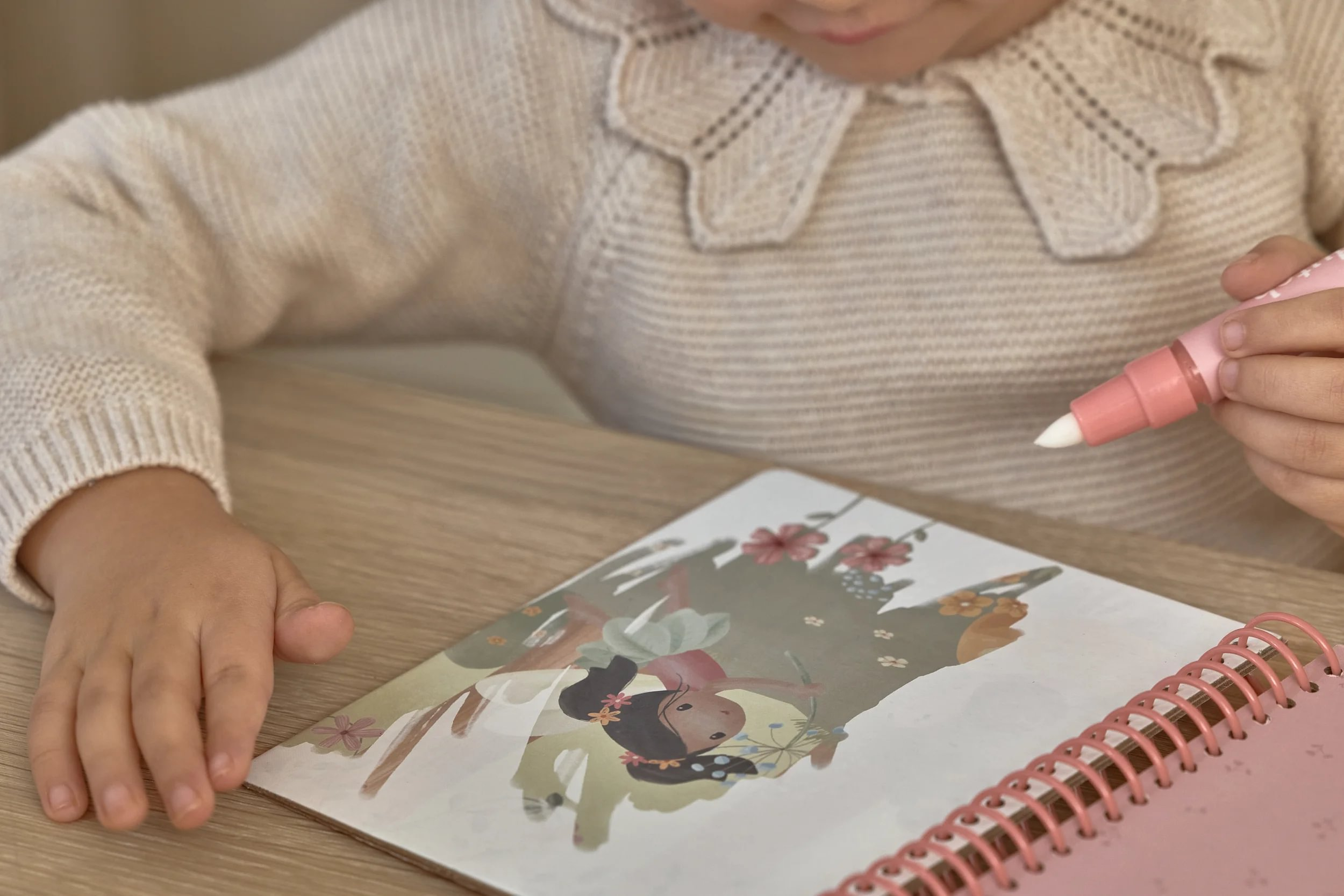 Kúzelná knižka skrýva na svojich stránkach krásne ilustrácie rozprávkových víl a zvieratiek z lesa. Ilustrácie sa odkrývajú s pomocou vodného fixu, ktorý je súčasťou knižky. Stačí fixku naplniť vodou a malému umelcovi či umelkyni sa počas chvíľky postupne vynorí víly, zvieratká i pestrofarebný rozkvitnutý les.
