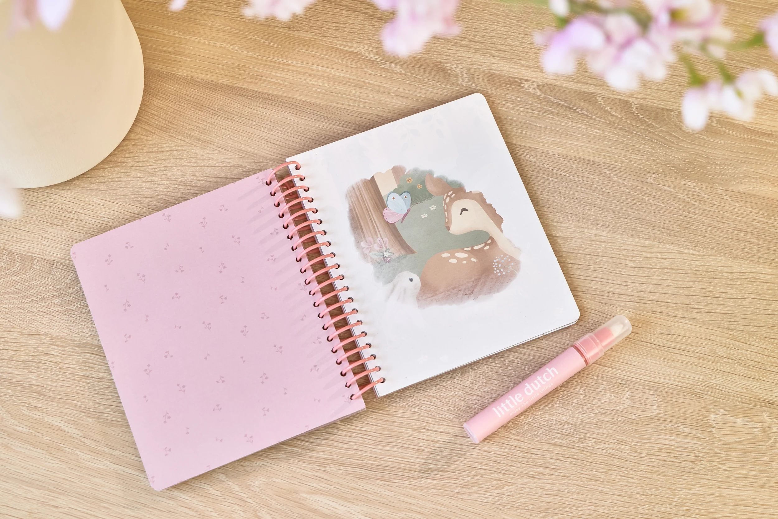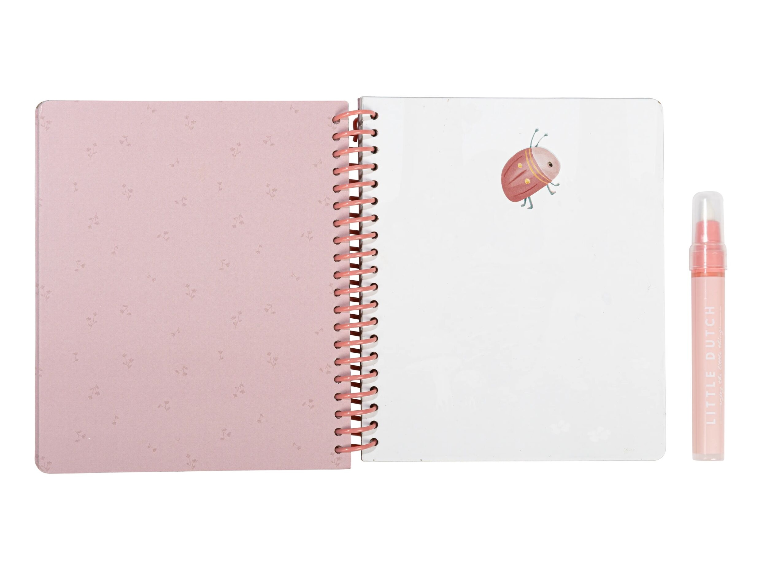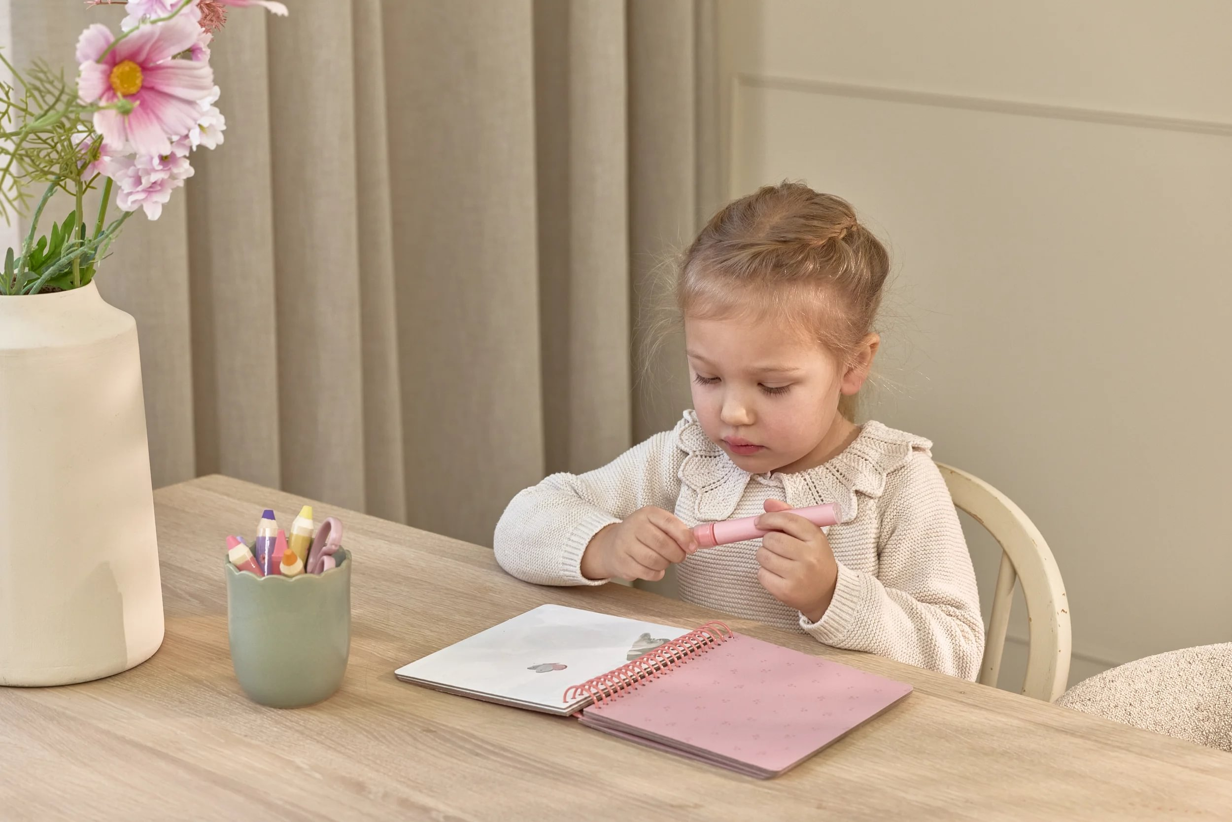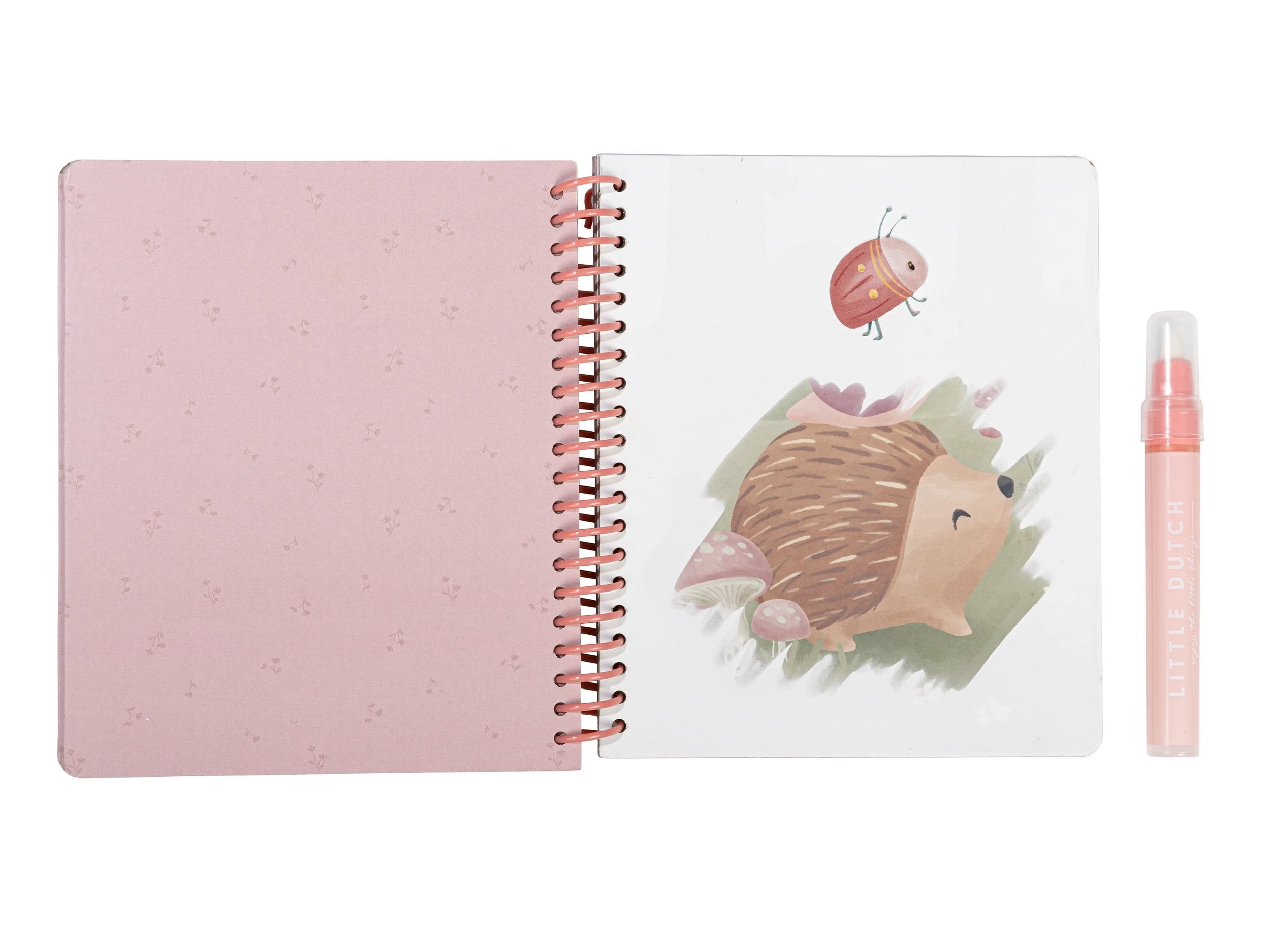 Knižka s piatimi ilustrovanými stránkami je opakovane použiteľná. Vďaka krúžkovej väzbe z pevného kartónu drží otvorená na pohodlné maľovanie.