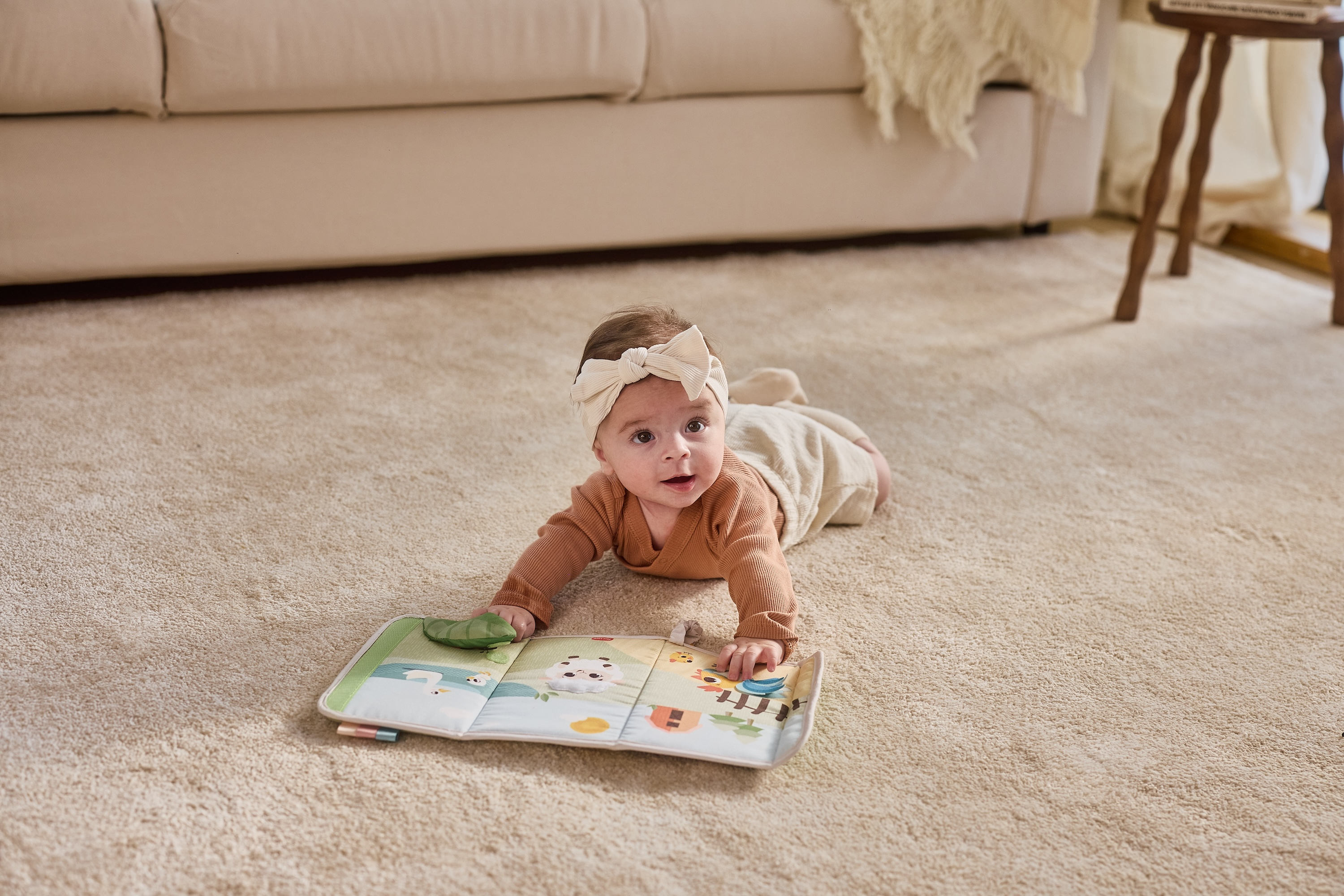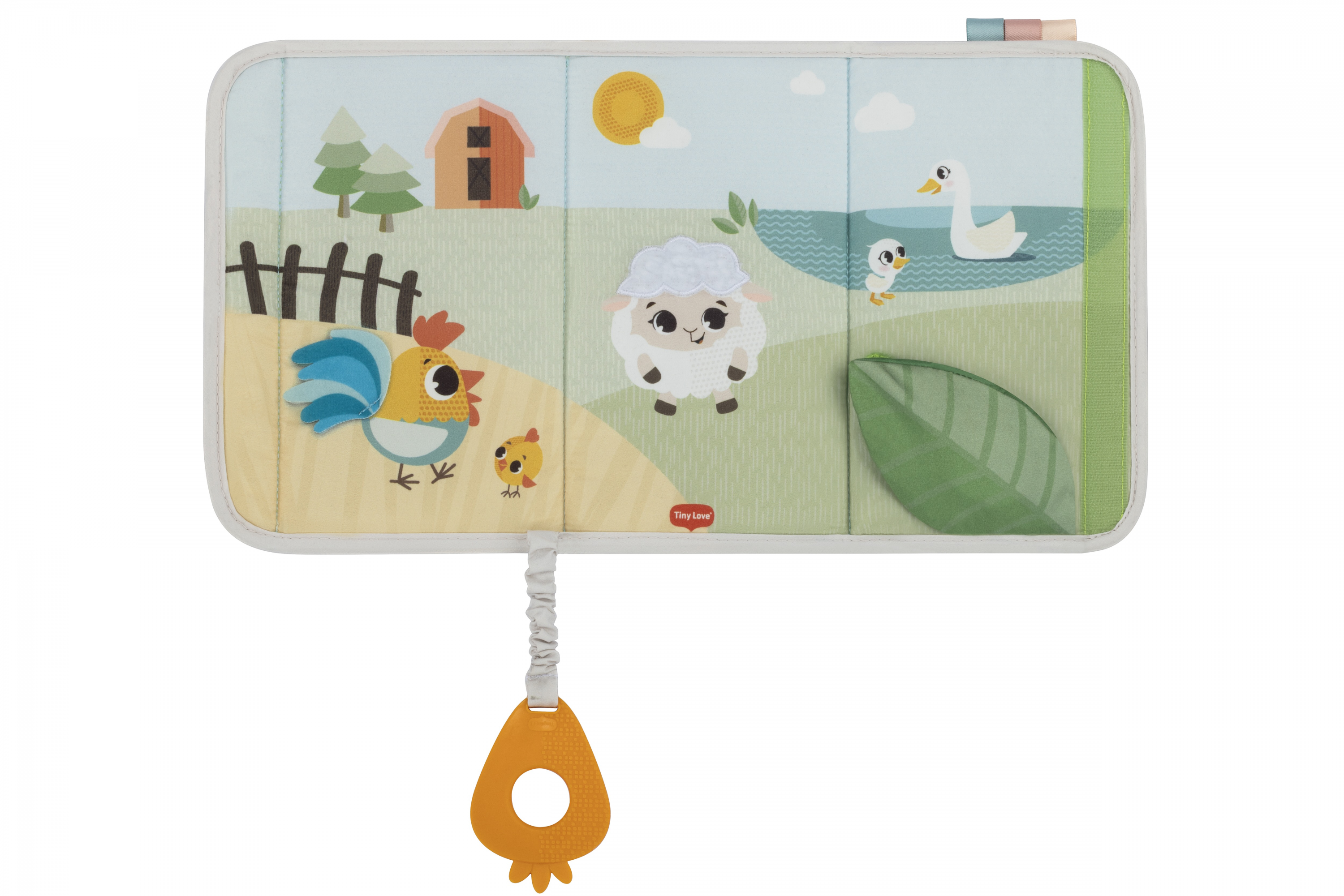 Detská knižka pre hru na brušku Tiny Love je mäkká, skladacia hračka, ktorá ponúka 4 varianty použitia pri hraní bábätka na brušku. Vysoko kontrastné obrázky, bezpečné zrkadlo, hryzátko a ďalšie aktivity lákajú bábätko na skúmanie a pomáhajú ho tak udržať dlhšie v polohe na brušku, ktorá je dôležitá pre posilňovanie jeho krčných a chrbtových svalov. Knižku môžete aj zložiť a pripevniť na kočík, takže zabaví vaše dieťa aj na cestách.