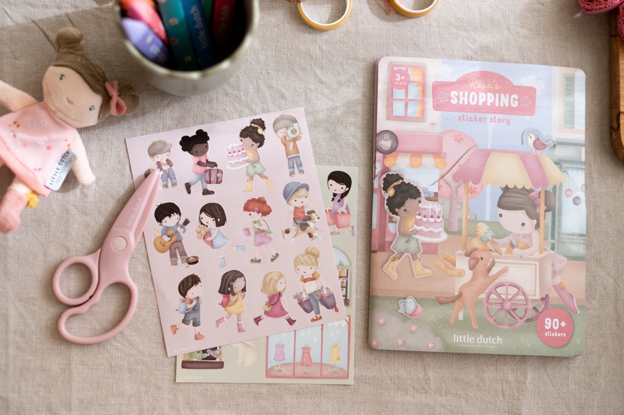 Fantázia vášho dieťaťa ožije s touto veselou samolepkovou knižkou Little Dutch. Obsahuje viac ako 90 farebných samolepiek s témou nakupovania a obojstranné herné pozadie, na ktorom si deti môžu vytvárať vlastné príbehy, scény a dobrodružstvá.