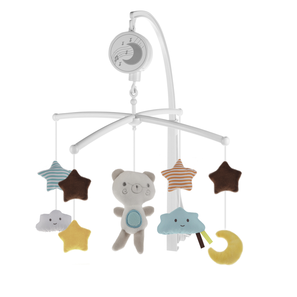Rozpohybované plyšové hračky v jemných farbách prírodných motívov, ktorým dominuje roztomilé zvieratko, sprevádza niekoľko príjemne sladkých melódií. To všetko u dieťatka podporuje sluchové, motorické a vizuálne vnemy. V jeho postieľke sa tak navodí príjemná atmosféra, ktorá dieťatko ľahko upokojí a jemne zavedie až do ríše snov.