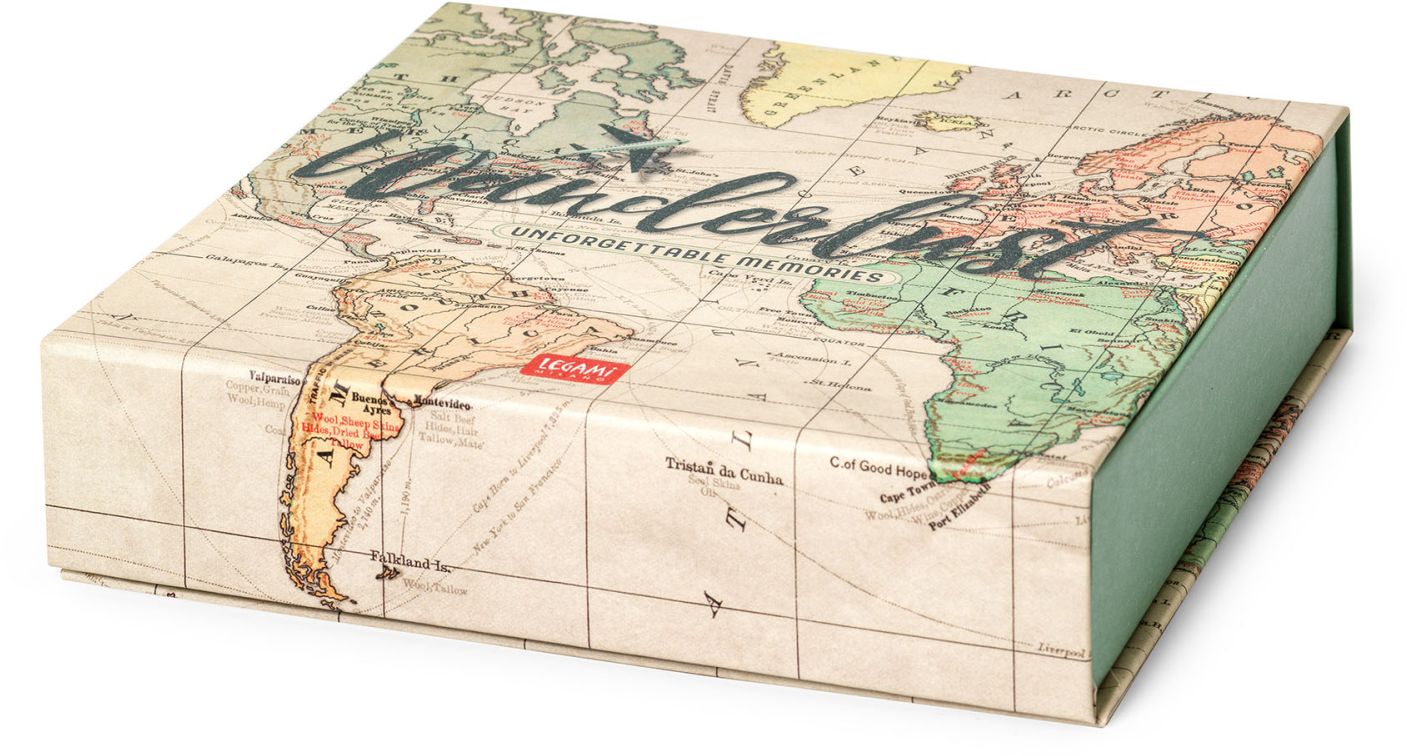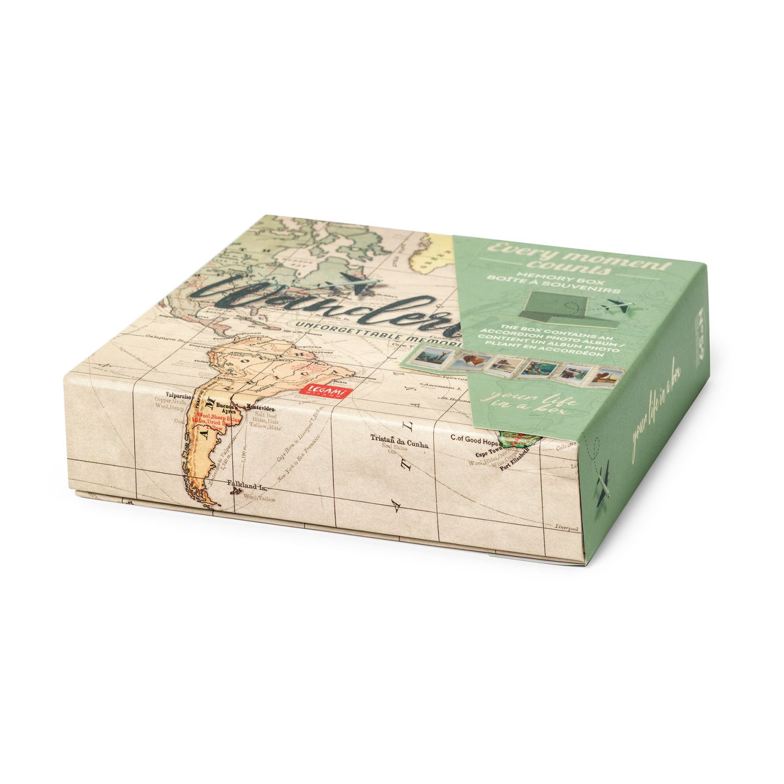 Niektorí ľudia si radi uchovávajú spomienky v truhlici, iní ich radšej uchovávajú na očiach. Pre tých, ktorí si nemôžu vybrať, je tu pamätná krabička Every Moment Counts - Travel od Legami: pevná papierová truhlica s pokladom, ktorá pojme album zložené do harmoniky a čaká na to, až bude naplnená fotografiami z vašich ciest.