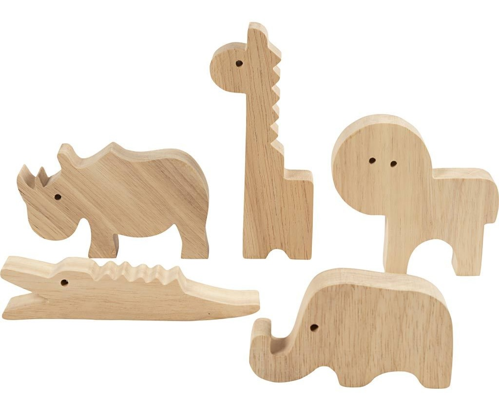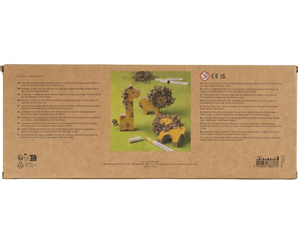 Originálna sada drevených safari zvieratiek na dozdobenie a hranie. Roztomilé figúrky zo masívneho dreva si deti môžu vyzdobiť podľa vlastnej fantázie – farbami, fixkami alebo kreatívnymi hmotami. Zvieratká sú dosť pevné na hranie a zároveň vyzerajú skvele ako dekorácia v detskej izbe.