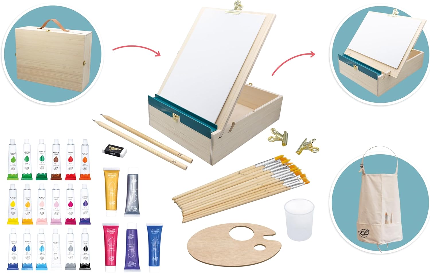 Objavte svet farieb a kreatívneho vyjadrenia! Táto elegantná maľovacia súprava v drevenom k...zobraziť viac