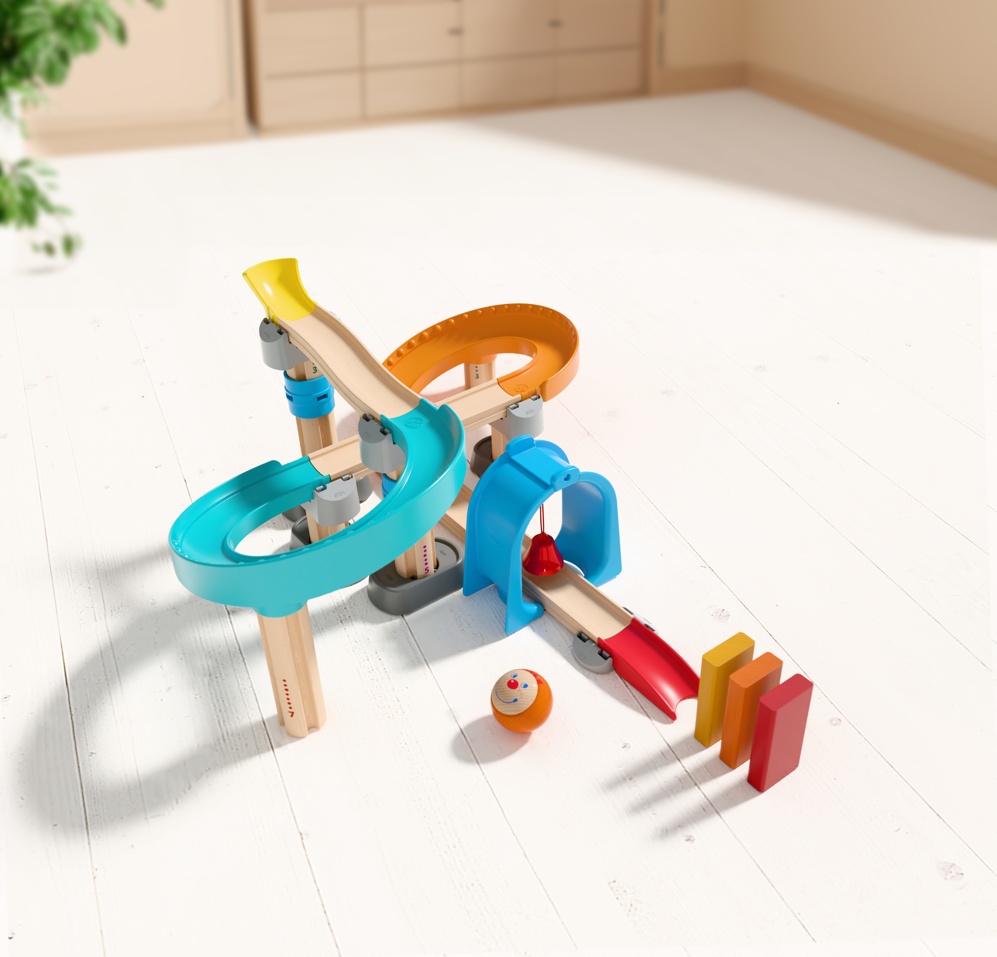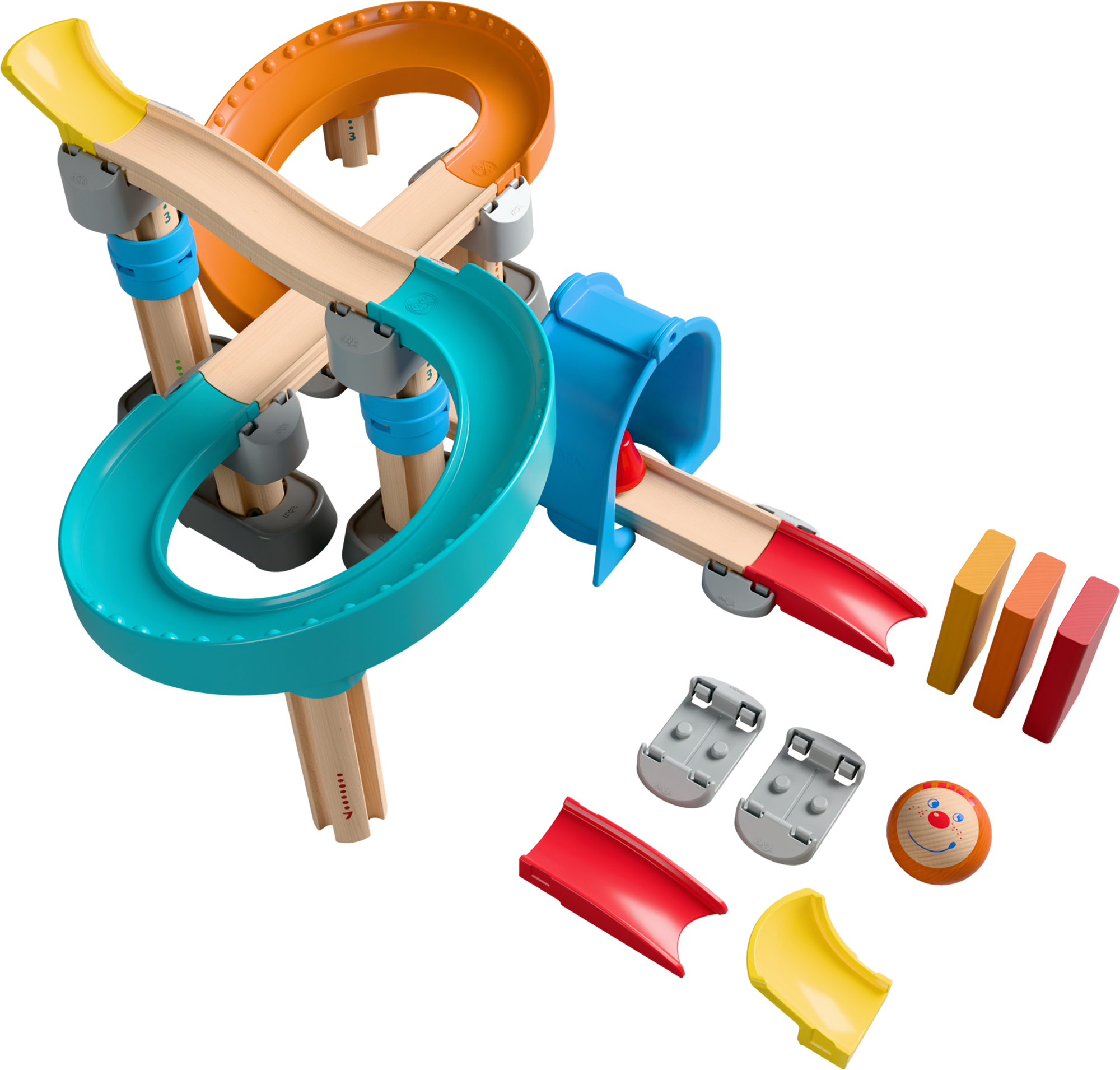 Pozor, lopta sa blíži! Po prekonaní hrkotajúcich zákrut a prehnanie sa zvonovým tunelom veľká lopta spôsobí, že stavebné kocky sa zrútia – deti to milujú! Kullerbü ich uchváti od samého začiatku! Zatiaľ čo tie najmenšie deti rady objavujú loptu a s úžasom ju sledujú, ako sa kotúľa, tie staršie chcú pomôcť vybrať dieliky a postaviť ju. Takto sa z jednej rovnej dráhy môže postupne vyvinúť zložitá dráha – vždy prispôsobená príslušnému vývojovému štádiu dieťaťa. Rôzne prvky poskytujú extra zábavu. Tip: Kreatívne deti si môžu svoje dráhy kedykoľvek prerobiť, napríklad použiť knihy ako tunely alebo predĺženia dráhy.