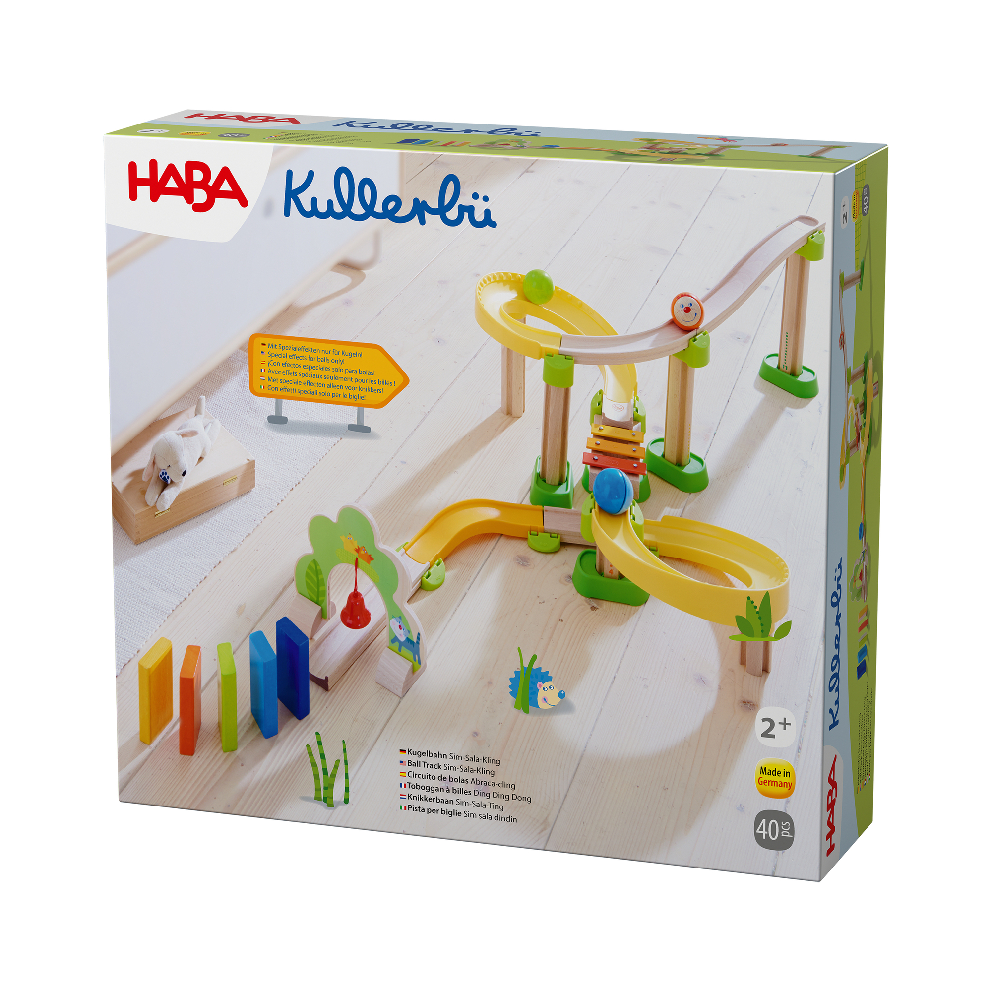 Guličková dráha Kullerbü Sim-Sala-Kling od Haba je rozprávkovo krásna a prekvapí malých staviteľov od 2 rokov viacerými zvukovými efektmi. Celkovo 38 dielov čaká na to, aby sa z nich postavila fantazijná guľôčková krajina. Vlnitá zákruta, strmé guľôčkové zákruty, rampa a niekoľko rovných dielov sa postarajú o zábavu už pri samotnom stavaní. Stĺpiky posúvajú guľôčkovú dráhu do vzdušnej výšky a dodávajú hre tempo. Zelené spojovacie prvky zaručujú, že guľôčková dráha Kullerbü Sim-Sala-Kling stojí pevne a bezpečne. Po zostavení stačí malý šťuchanec a guľôčka Paul sa „vrhne“ nadol, prejde prvou strmou zákrutou a rozbehne sa po zvukových schodoch. Po ďalších zákrutách a bráne so zvončekom na cieľovej rovinke čaká guľôčku Paula úloha – zhodiť dominové kamene. Pre všetkých, ktorí chcú vedieť o Kullerbü ešte viac, sú pripravené rozprávky na čítanie, kreatívne nápady, informácie pre rodičov a hry v tematickom svete Kullerbü. Obsah balenia: 1 vlnitá zákruta, 2 strmé guľôčkové zákruty, 1 zákruta, 2 rovné diely, 1 rampa, 7 stĺpikov, 1 štartovací diel, 5 dominových kameňov, 1 efektová guľôčka a 1 guľôčka Paul.