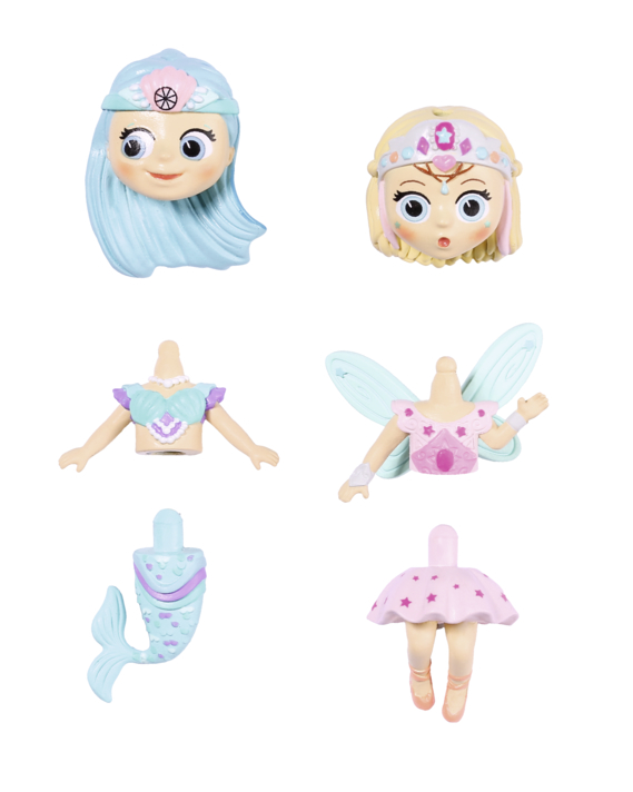 Vymieňaj bábikám hlavu, trup a nohy a vytvor tak úplne novú postavičku. Hlavička s vláskami ozdobený...zobraziť viac