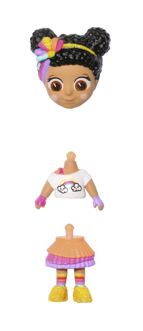 "Vymieňaj bábikám hlavu, telo a nohy a vytvor tak úplne novú postavičku. Modré kučeravé vlasy, telo ...zobraziť viac