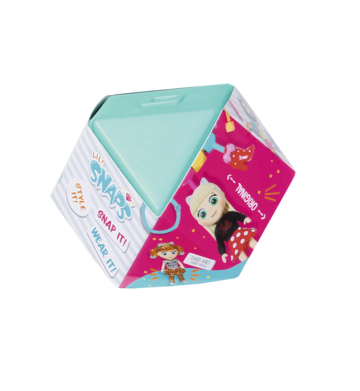 "Vymieňaj bábikám hlavu, telo a nohy a vytvor tak úplne novú postavičku. Modré kučeravé vlasy, telo s dúhovým tričkom a super rockerské nohy. Alebo! Krátke vlasy, žlté tričko, červeno a bielo bodkovaná sukňa s ružovým tričkom. Zacvakni jednotlivé časti bábiky do seba a ukáž tak, akú máš práve náladu!Existuje viac ako 100.000 rôznych kombinácií.Niekde je schovaná aj vzácna trblietavá bábika! LIL SNAPS sú balíčky s prekvapením, ktoré hravo kombinujú bábiky a šperky. Deti od piatich rokov môžu vytvárať nové a obmieňať existujúce LIL' SNAPS šperky a módne doplnky znova a znova. Malé kráľovné krásy môžu ozdobiť nielen seba, ale aj ich obľúbené propriety, ako napríklad batoh, ceruzku alebo džínsovú bundu. • LIL' SNAPS • Na hranie, zbieranie a vymieňanie • Ako šperky alebo módne doplnky LIL' SNAPS Bábika (1. séria). V „diamante“ nájdete: bábiku z troch častí (hlava, trup, nohy), prívesok, 2 konektory, 3 oddeľovače, 1 koliesko, 5 farebných spojovacích šnúrok, 1 stojan na bábiku. "