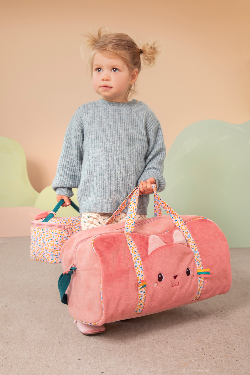 Cestovná taška mačička Jeanne je ideálnym spoločníkom pre deti od 2 rokov, ktorý ich bude sprevádzať pri ich dobrodružstve. Očarí svojou jemne ružovou farbou a výšivkou s obrázkom mačičky Jeanne. Táto cestovná taška je vyrobená z mäkkého a odolného polyesteru a dokonale sa prispôsobí malým detským ramienkam. Má jedno vonkajšie a jedno vnútorné vrecko, dve pevné uchá a nastaviteľný bavlnený ramenný popruh, ktorý umožňuje nosenie v ruke alebo cez rameno v závislosti na preferenciách a pohodlí vášho dieťaťa. S rozmermi 45 x 23 x 25 cm spĺňa štandardy pre kabíny lietadiel a ľahko sa vojde pod sedadlo alebo do batožinového priestoru. Ľahko sa udržuje a možno ju prať v práčke na 30 °C, na jemný cyklus.