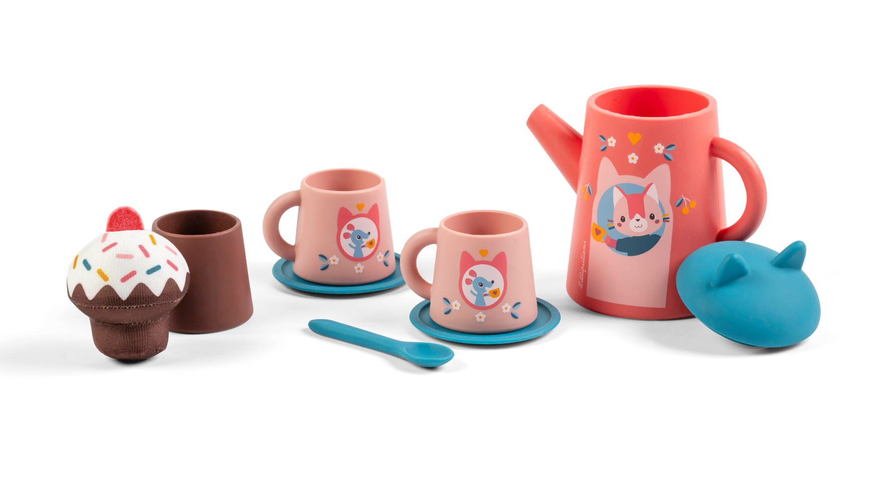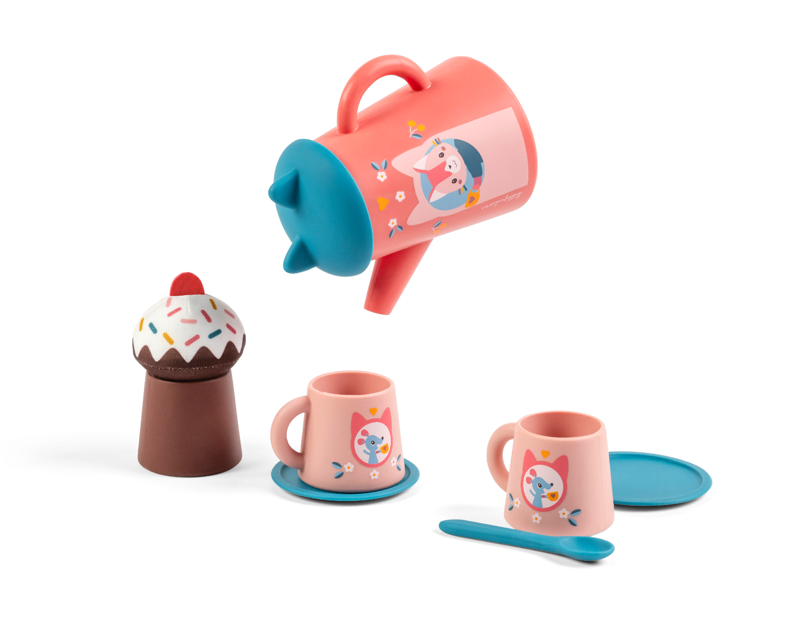 Pripravení na poriadne čajové posedenie? Originálna hračka do kúpeľa je určená pre deti od 18 mesiacov. Táto čajová súprava sa skladá z 9 kusov a obsahuje: kanvičku s obrázkom mačičky Jeanne a silikónovým viečkom s malými mačacími uškami, 2 hrnčeky s obrázkom malých myšiek, 2 podšálky, malú lyžičku a muffin s téglikom. Nalievanie, rozlievanie, prenášanie – kde inde než vo vani? Hračka je rovnako vhodná pre hranie vo vode, tak i pre zábavu v kuchynke. Súpravu stačí opláchnuť čistou vodou a nechať všetky diely uschnúť.