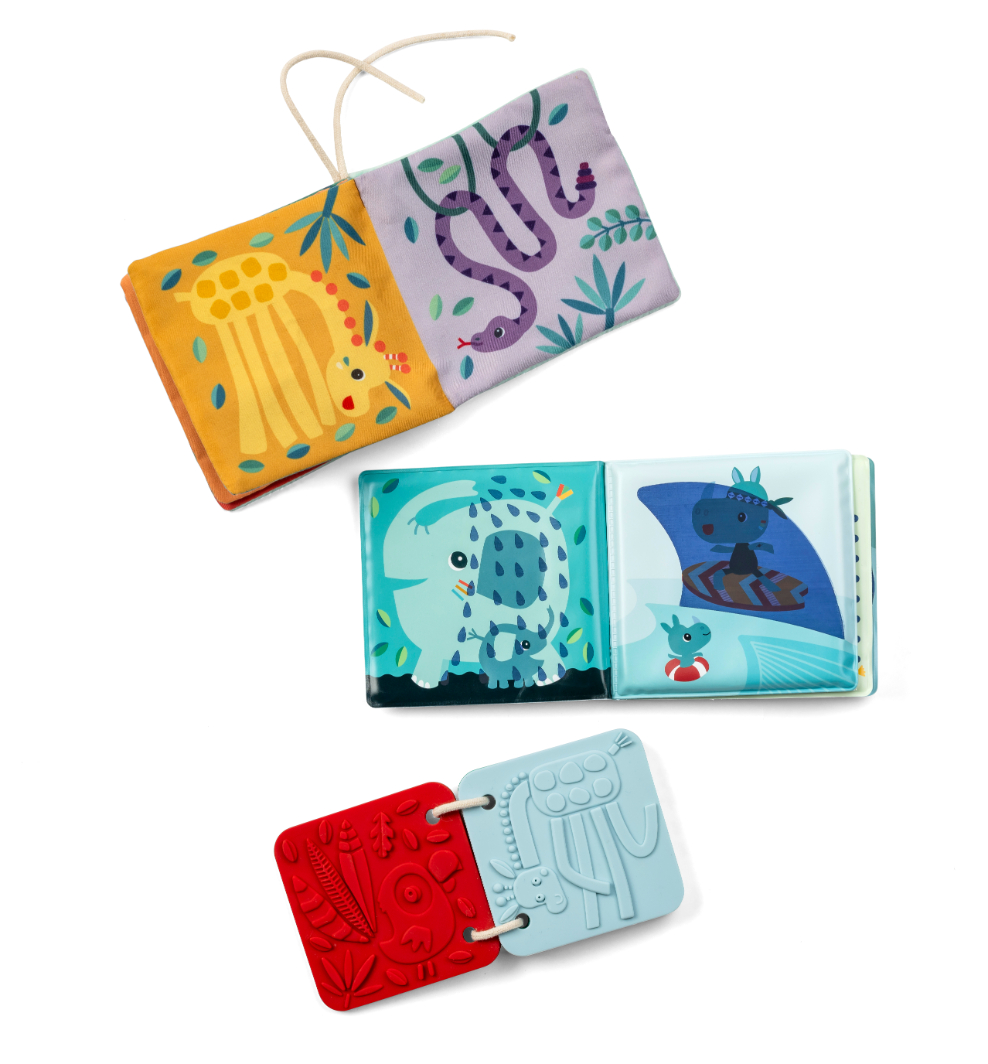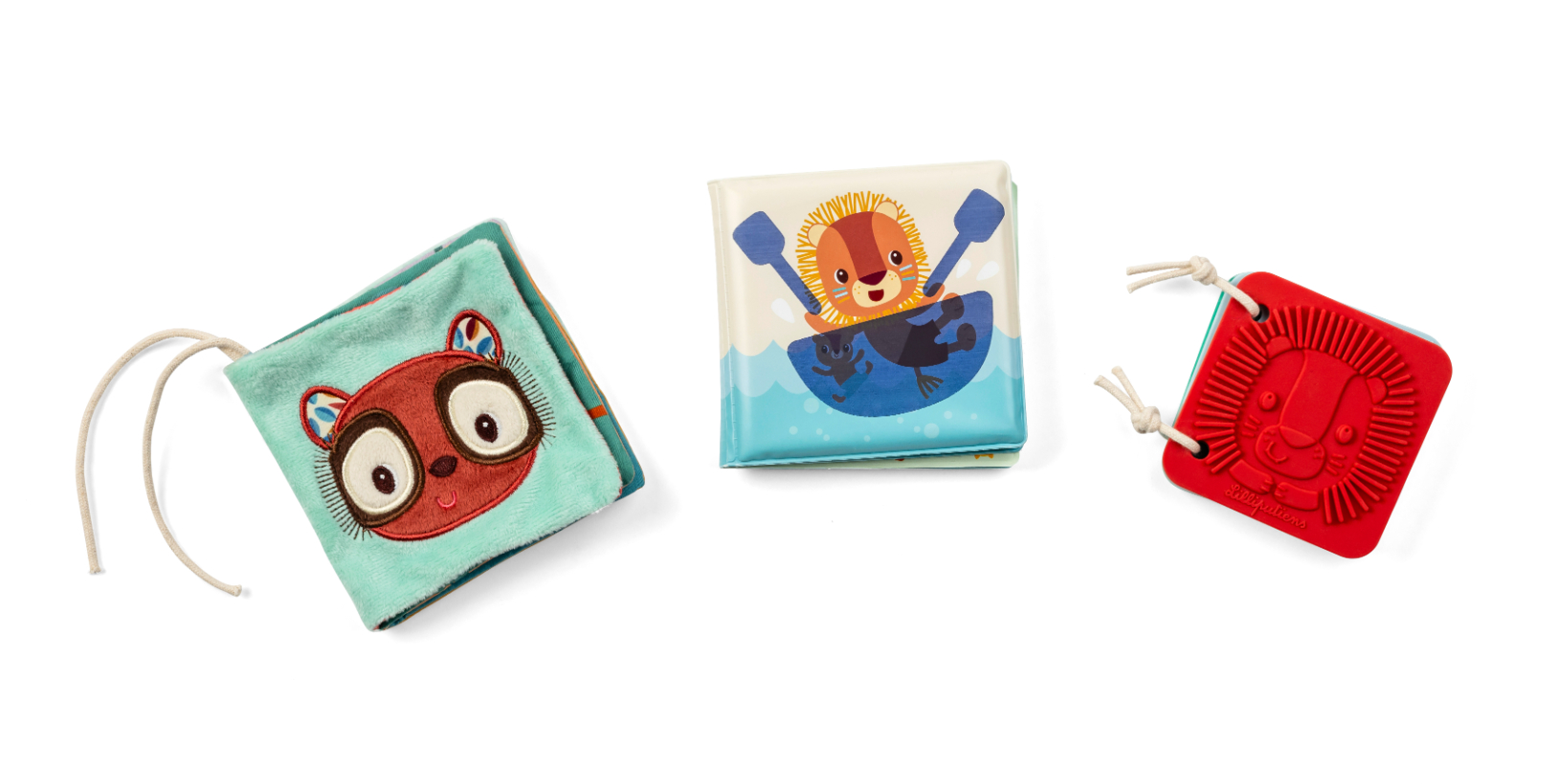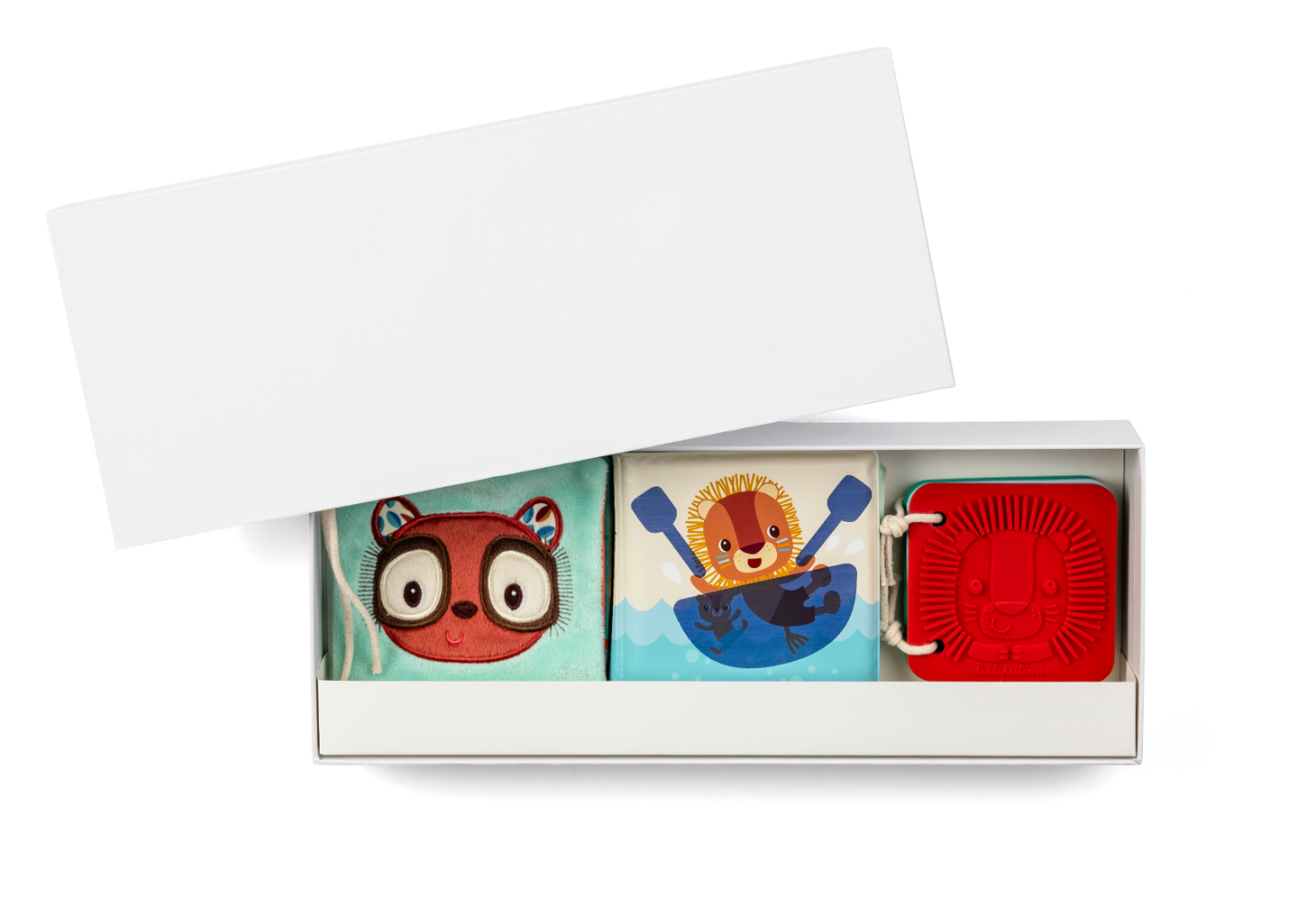 Tri malé knižky, ktoré prebudia zmysly bábätka sú vhodné od 3 mesiacov. Obrázková knižka na preskúmavanie, knižka do kúpeľa plná kúzelných prekvapení a silikónová knižka na preskúmavanie drobnými prstíkmi. V krásnej škatuľke vhodnej ako darček plný objavov!