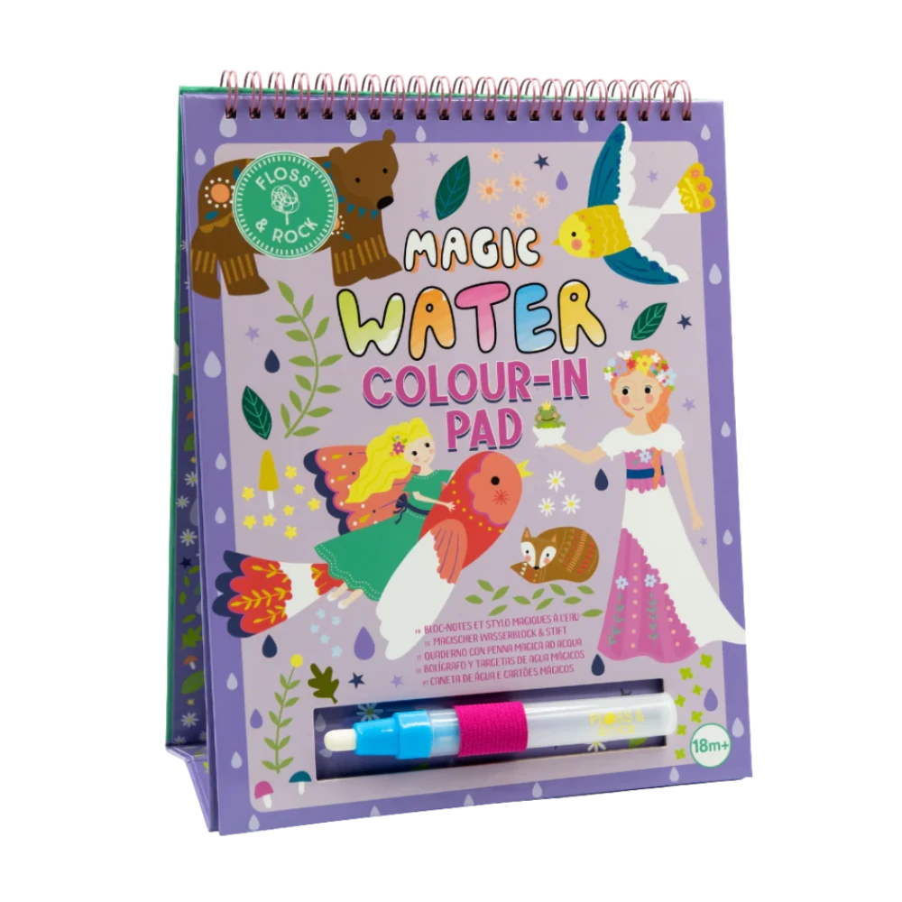 Objavte kúzlo vyfarbovania bez neporiadku! Magická sada Floss&Rock Rozprávka prináša deťom zábavné a kreatívne chvíle s opakovane použiteľnými kartami a vodným perom. Stačí naplniť pero vodou a pri kreslení sa na kartách objavia krásne farby a motívy.