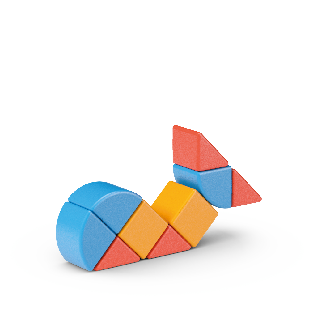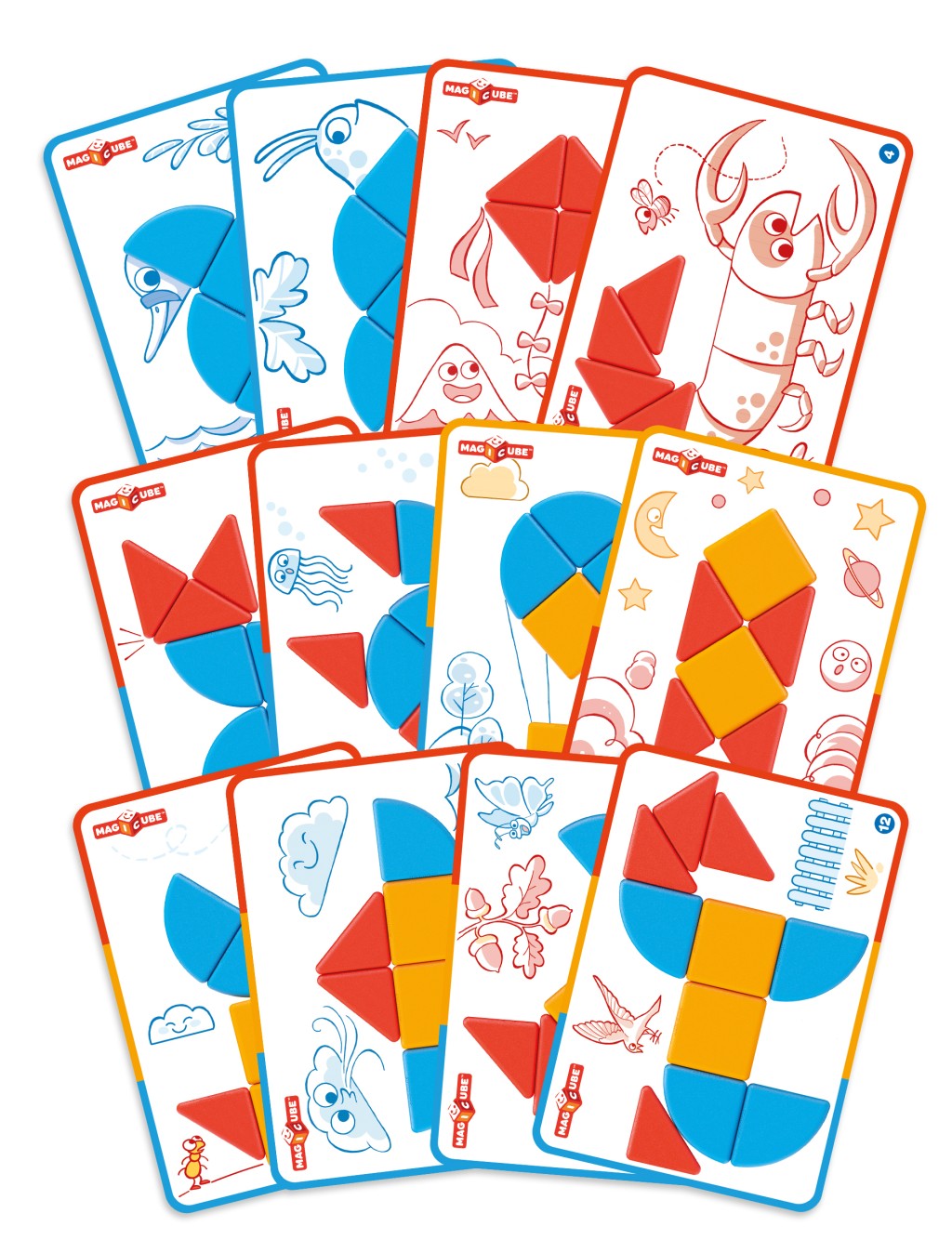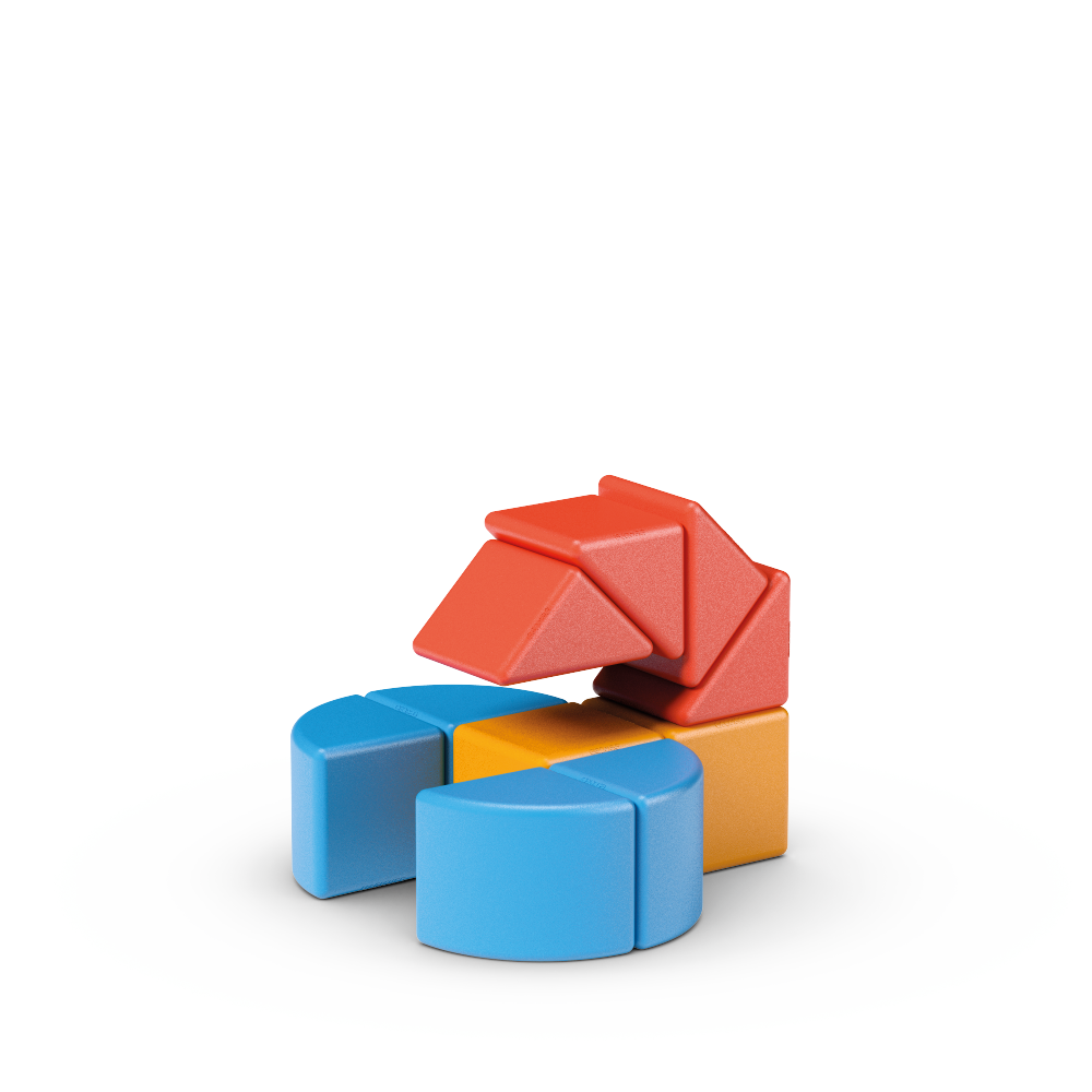 Unikátna magnetická stavebnica doplnená kartičkami pre ľahké vytváranie obrázkov. Prechádza od jednoduchých po zložitejšie varianty práce s rôznymi tvarmi. Atraktívna zábava pre menšie deti – podporuje fantáziu a tvorivosť. Obsahuje 10 magnetických prvkov a 6 obojstranných kartičiek s 12 návodmi. Vyrobené zo 100% recyklovaného plastu. Vhodné pre deti od 2 rokov.