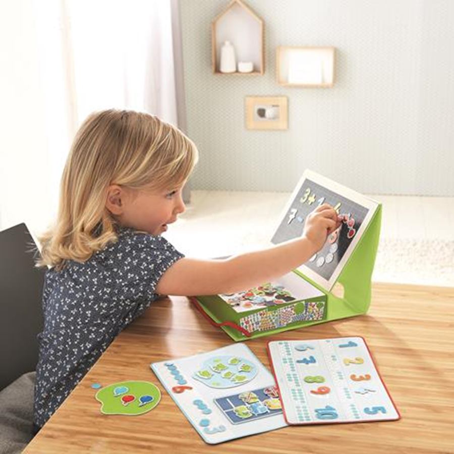 Zabavte vaše deti počítaním! 1, 2, 3 čísla a ja! Táto veselá hra na usporiadanie čísel hravo predstavuje vaše dieťa do sveta čísel a čiastok. Veľký výber motívov vyzýva deti, aby sa radovali s matematikou.Detičky si podľa predlohy počítajú jednoduché matematické príklady a môžu vymýšľať vlasné príklady. Magnetická skladačka v tvare knihy vhodná na doma aj na cesty. Obsah:1 krabička, 3 obrázky na pozadí, 5 perforovaných kariet so 158 magnetickými kusmi.Varovanie: Nevhodné pre deti do 3 rokov. Malé časti. Hmotnosť produktu: 0,58 kgVýška: 5 cmŠírka: 23,5 cmDĺžka: 18,5 cmVek od: 3 rokovPočet dielov: 158 kusovMateriál: kartón, magnetická fólia