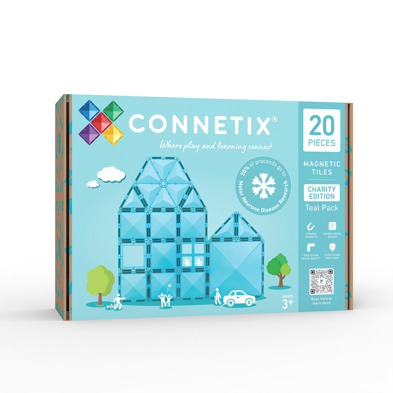 Toto balenie s 20 magnetickými dlaždicami v čisto tyrkysovej farbe prináša do konštrukcie odvážne dizajny, nekonečnú kreativitu a zmysluplnú hru so symbolickou farbou na zvýšenie medzinárodného povedomia, kolektívneho vplyvu a podpory pre ľudí postihnutých MND.