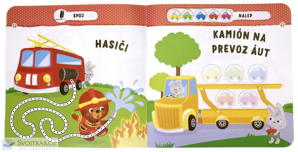 Nauč sa spoznávať dopravné prostriedky! Auto, lietadlo, loď - poznáš ich všetky? Vieš, ako vyzerá sanitka a akú má úlohu? Pozri sa na malého zajačika - čím cestuje a kam ide? Všetko musíš ešte správne vyfarbiť, spojiť a nalepiť samolepky na tie správne miesta. V tejto knižke sa naši najmenší zoznámia s tým, čo jazdí, lieta a pláva, vďaka jednoduchým aktivitám nielen so samolepkami. Tak rýchlo, pustite sa spoločne s malým zajačikom do učenia!