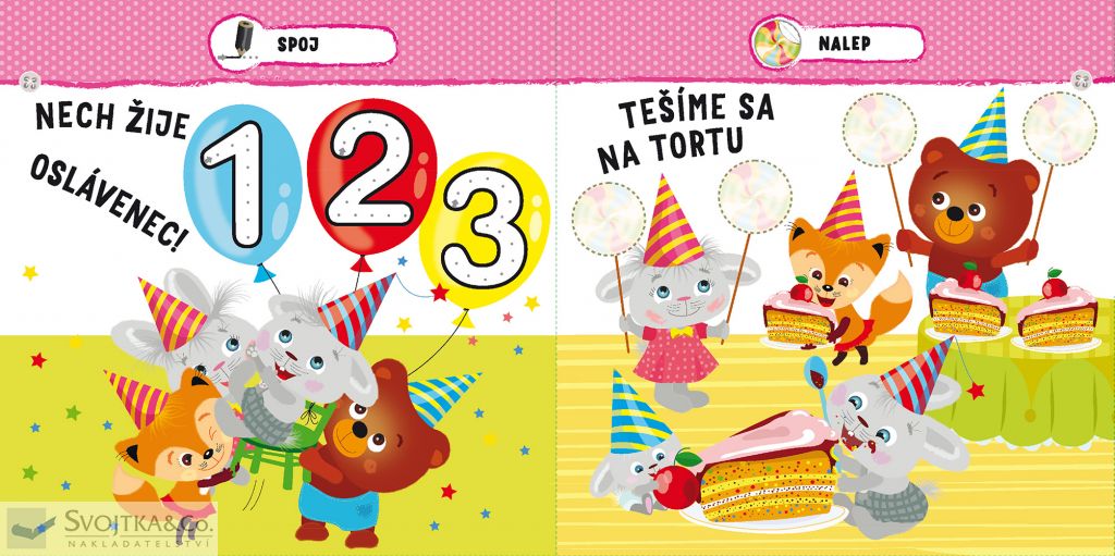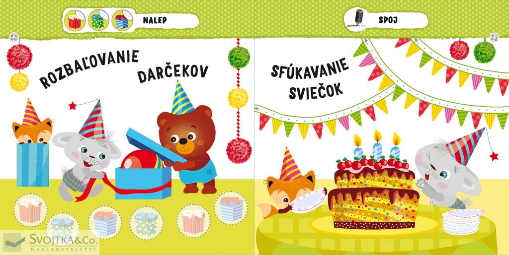 Osláv narodeniny spolu s malým zajačikom! Prekvapenie! Malý zajačik má dnes narodeniny a už sa veľmi teší. Kto príde na oslavu? Treba vyzdobiť izbu a upiecť tortu. Kto oslávenca pobaví? Bude to klaun! Všetko musíš ešte správne vyfarbiť, spojiť a nalepiť samolepky na tie správne miesta. V tejto knižke sa naši najmenší naučia, čo sa deje na detskej narodeninovej oslave, aj vďaka jednoduchým aktivitám nielen so samolepkami. Tak rýchlo, pusť sa spoločne s malým zajačikom do učenia!