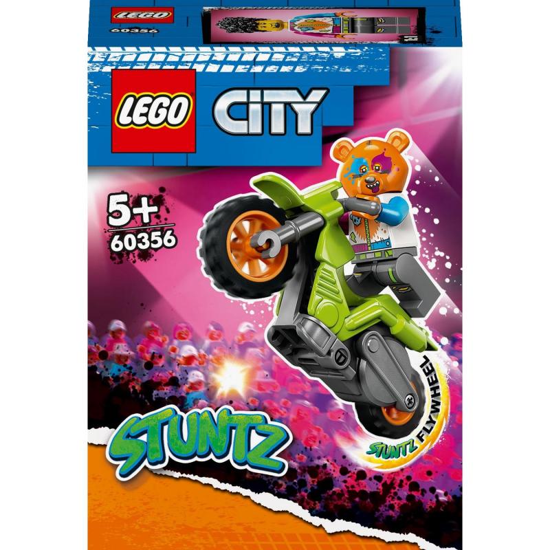 So stavebnicou LEGO® City (60356) Medveď a kaskadérska motorka majú deti od 5 rokov pred sebou celé hodiny vzrušujúcich hier s úžasnou motorkou na zotrvačník, na ktorej môžete predvádzať veľkolepé skoky či triky. Stačí pridať minifigúrku šoféra s vtipnou medveďou helmou a kaskadérska zábava nebude mať konca! Interaktívna staviteľská zábava Stavebnica kaskadérskej motorky sa dodáva so zrozumiteľným obrázkovým návodom a k dispozícii je aj appka LEGO Builder – digitálny mentor s intuitívnymi nástrojmi na otáčanie a približovanie, ktoré deťom umožňujú počas stavania si rôzne zobrazovať model zo všetkých strán. Deti sa stanú hviezdami vlastnej šou Stavebnice LEGO City Stuntz dostanú deti do centra akcie s parádnymi vozidlami, realistickými budovami a zábavnými postavami, s ktorými sa môžu tešiť na hry plné fantázie. Po spojení s inými setmi zo série LEGO City Stuntz si môžu tvoriť ešte väčšie a extravagantnejšie kaskadérske scénky!