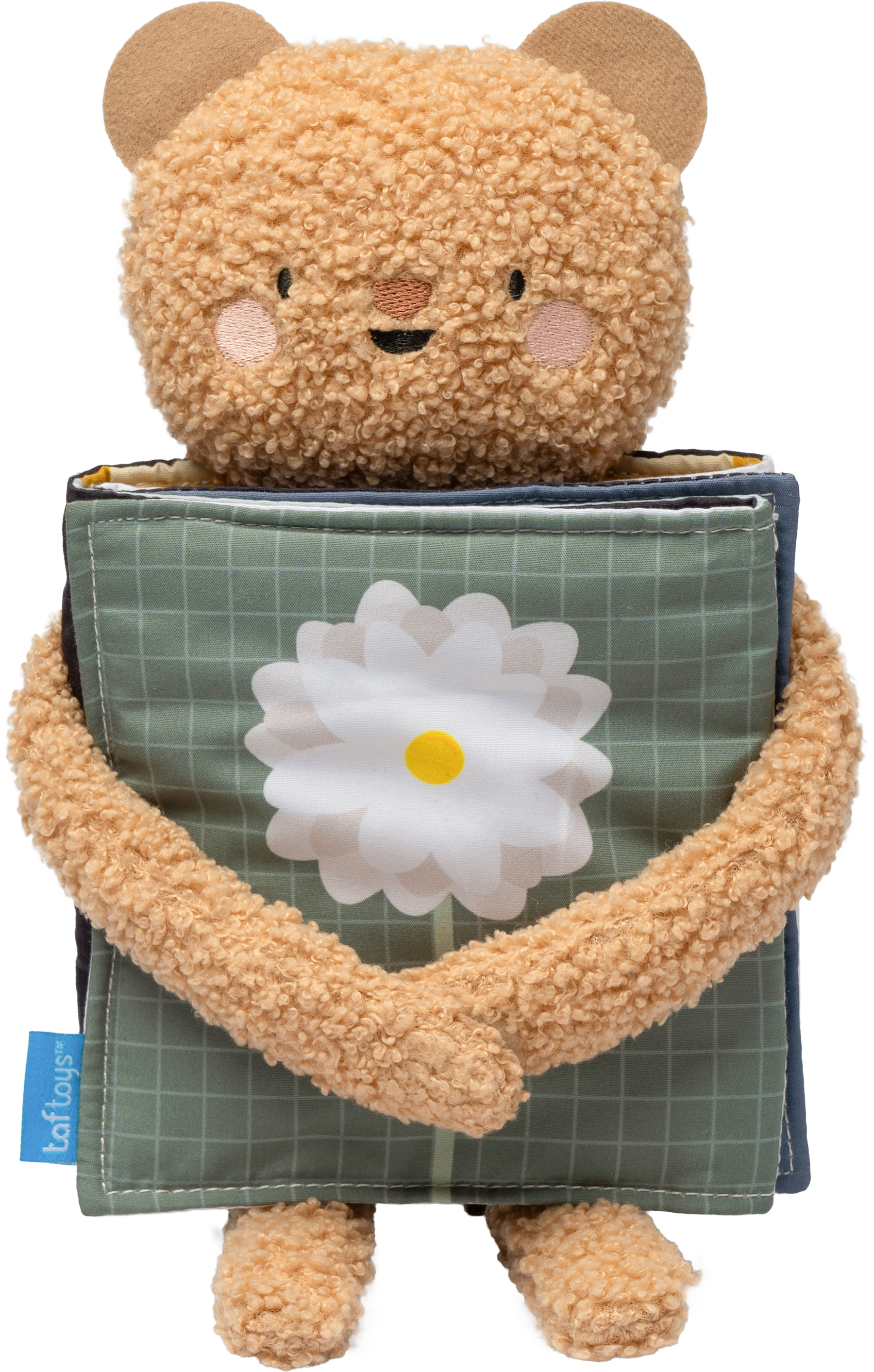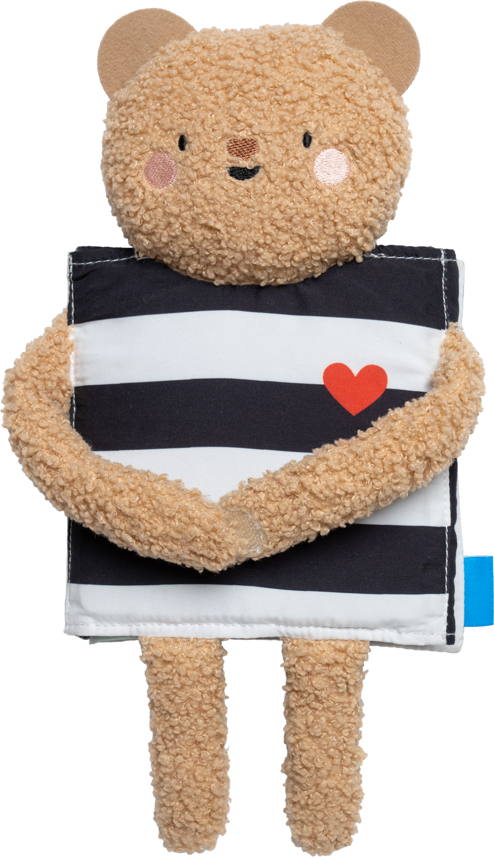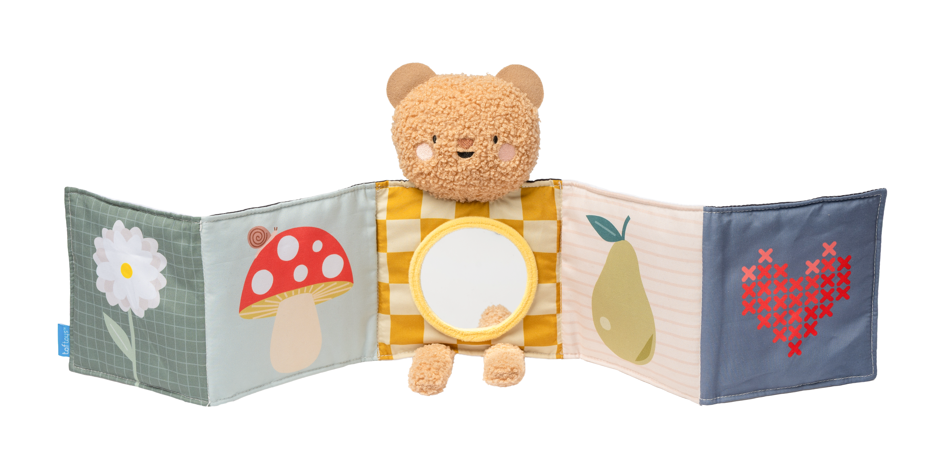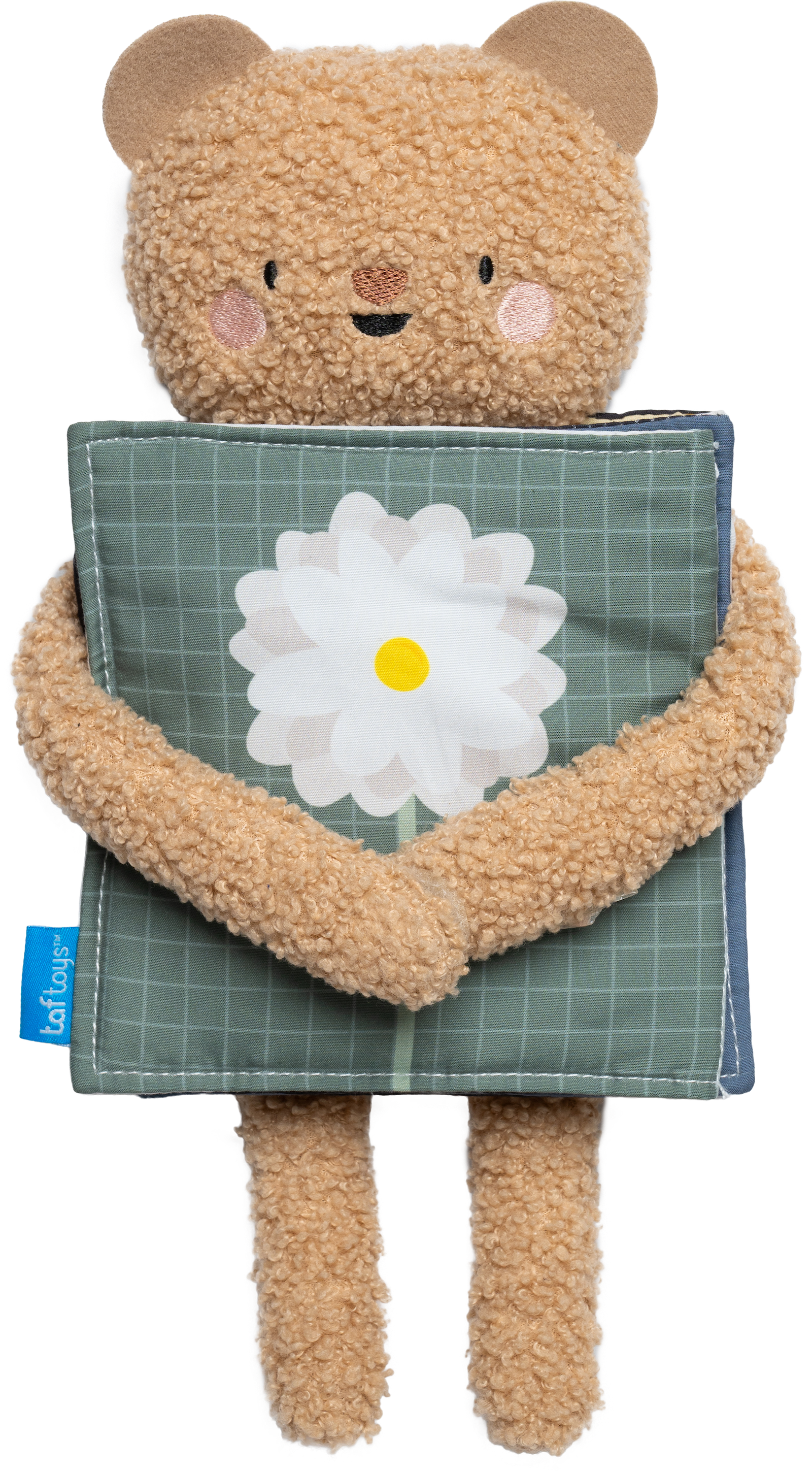 Plyšový medvídek s textilní knížkou miminko zabaví a zároveň pomáhá rozvíjet jeho jednotlivé smysly. Oboustranná knížka nabízí stranu pro novorozence s vysoce kontrastními černobílými ilustracemi a stranu s výraznými barevnými ilustracemi a aktivitami ke zkoumání pro starší miminko. Hračka podněcuje zvídavost, podporuje vývoj dítěte a zároveň nabízí příjemnou porci mazlení.