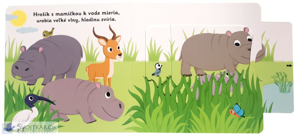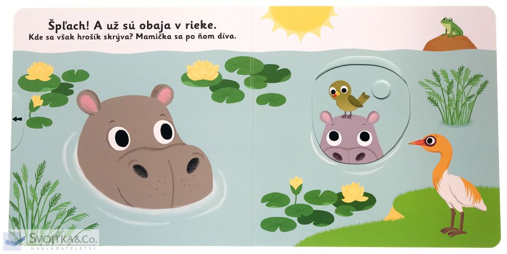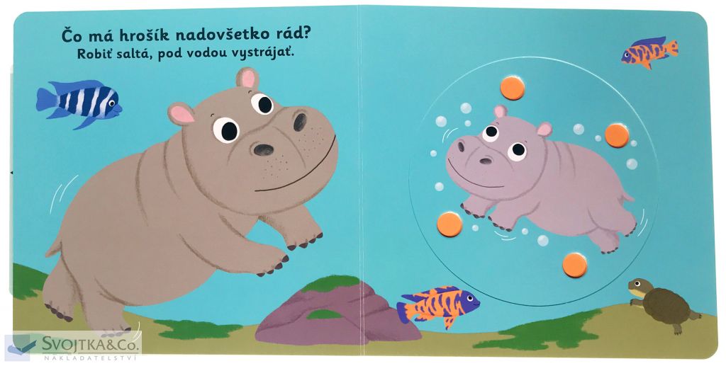 "Čo má hrošík nadovšetko rád? Robiť saltá, pod vodou vystrájať." Objavovať svet s týmto leporelom pre najmenšie deti od jedného roka je také zábavné! Pevné stránky s pohyblivými prvkami precvičia aj jemnú motoriku. Stačí len vložiť prštek do správneho otvoru a zľahka vysunúť, zatiahnuť alebo otočiť, a hneď bude váš malý objaviteľ poznať odpovede.