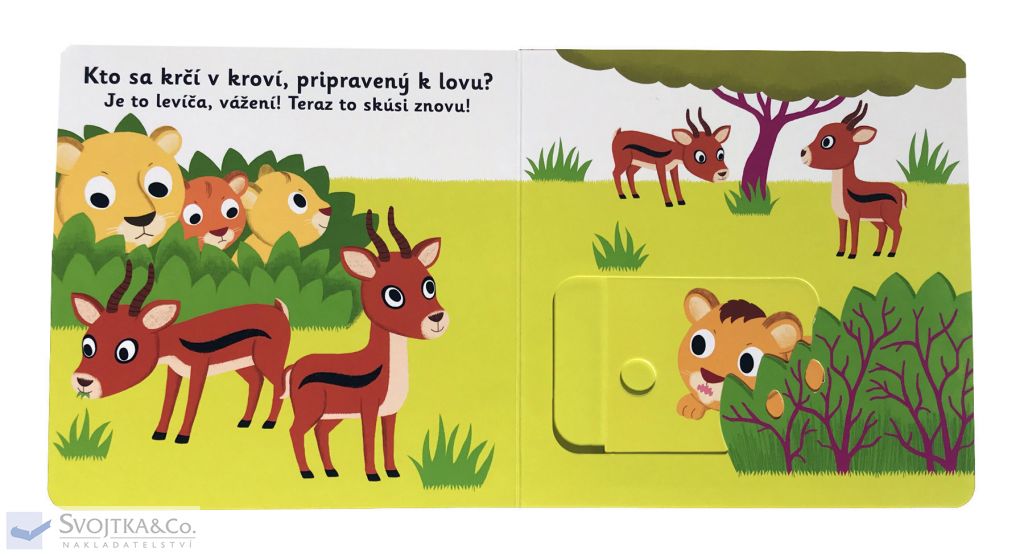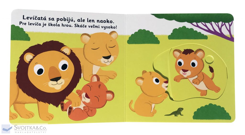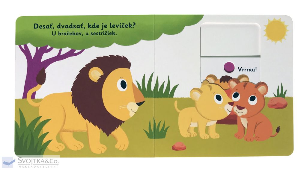 Desať, dvadsať, kde je levíča? U bračekov, u sestričiek! Objavovať svet s týmto leporelom pre najmenšie deti od jedného roka je také zábavné! Pevné stránky s pohyblivými prvkami precvičia aj jemnú motoriku. Stačí len vložiť prštek do správneho otvoru – zľahka vysunúť, zatiahnuť alebo otočiť – a hneď bude váš malý objaviteľ poznať odpovede.