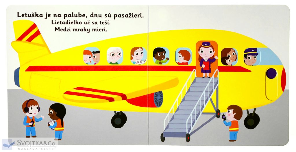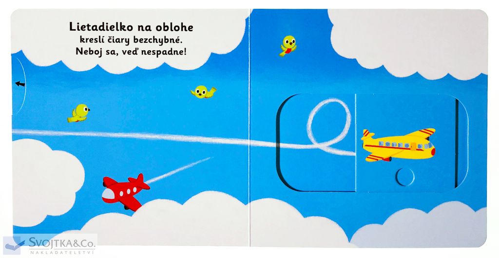 Letuška je na palube, dnu sú pasažieri, lietadielko už sa teší – medzi mraky mieri. Objavovať svet s týmto leporelom pre najmenšie deti od jedného roka je také zábavné! Pevné stránky s pohyblivými prvkami precvičia aj jemnú motoriku. Stačí len vložiť prštek do správneho otvoru, zľahka vysunúť, zatiahnuť alebo otočiť, a hneď bude váš malý objaviteľ poznať odpovede.