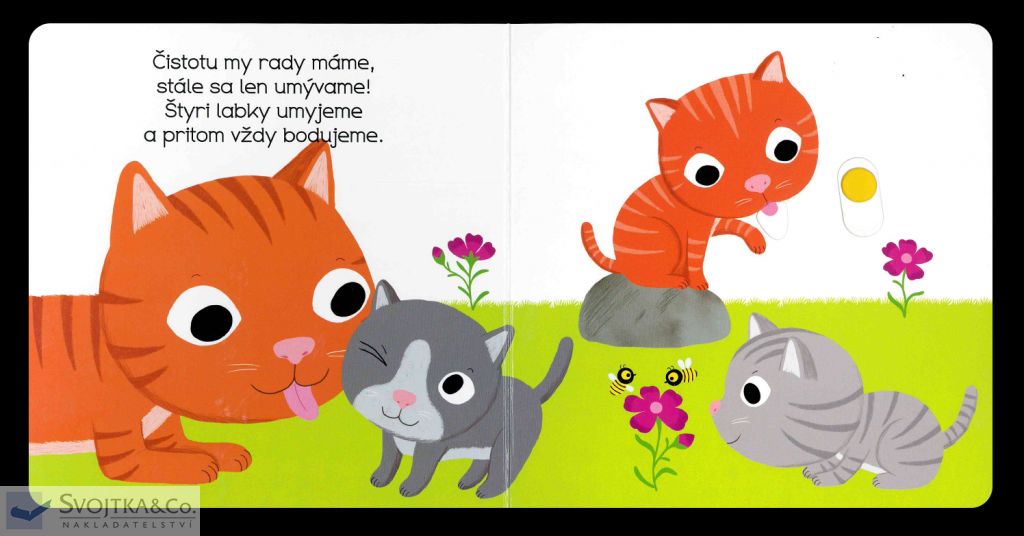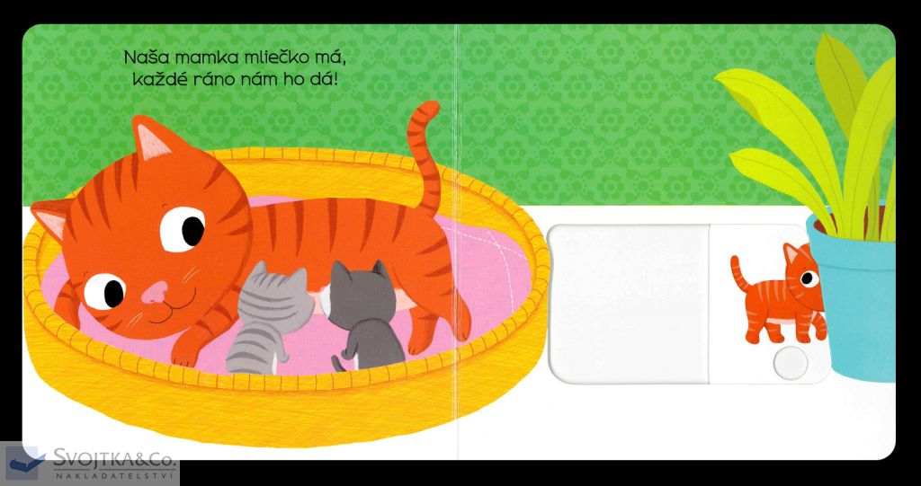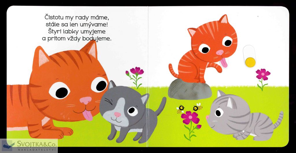 Malé mačiatko má veľa práce. Musí si dať mliečko, olízať labky a pohrať sa s klbkom vlny. A je naozaj unavené! Objavovať svet s týmto leporelom pre najmenšie deti od jedného roka je také zábavné! Pevné stránky s pohyblivými prvkami precvičia aj jemnú motoriku. Stačí len vložiť prštek do správneho otvoru, zľahka vysunúť, zatiahnuť alebo otočiť a hneď bude váš malý objaviteľ poznať odpovede.
