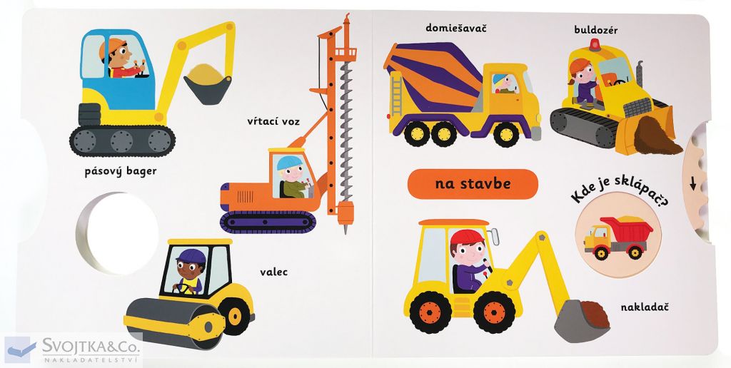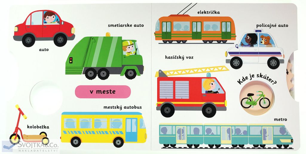 Tieto autá poznám, tie nám jazdia pod oknami! Ale kde jazdí električka a metro? Koho vozí diaľkový autobus a čo sa mieša v tej veľkej hlučnej cisterne na stavbe? Pre všetkých malých milovníkov rýchlych kolies je táto knižka ako stvorená. Nestačí však dopravné prostriedky obdivovať, treba ich vedieť aj správne pomenovať. Aký je rozdiel medzi raketou a lietadlom? Vieš, čo je lanovka alebo šliapadlo? Prezerajte si s dieťaťom jednoduché obrázky v štýle MiniPÉDIE a pomocou otočného kolieska spolu hľadajte správne vozidlo. Knižka pre najmenších rozvíja slovnú zásobu a jemnú motoriku.