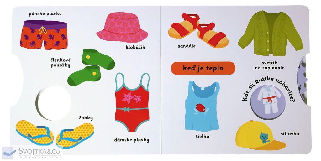 Čože si dnes oblečiem? Vonku je krásne, tak napríklad tričko, alebo sukňu? Keď sa malé deti stávajú samostatnými, rady sa podieľajú na výbere svojho oblečenia. Je aj dôležité všetky kúsky správne pomenovať. V čom sa líšia sandále a papučky? Aký je rozdiel medzi krátkymi a dlhými nohavicami? Na čo nesmieme zabudnúť, keď je vonku zima, alebo naopak keď svieti jasné slniečko? Prezerajte si s deťmi jednoduché obrázky štýle MiniPÉDIE a pomocou otočného kolieska spolu hľadajte správny kúsok oblečenia. Knižka pre najmenších rozvíja slovnú zásobu a jemnú motoriku.