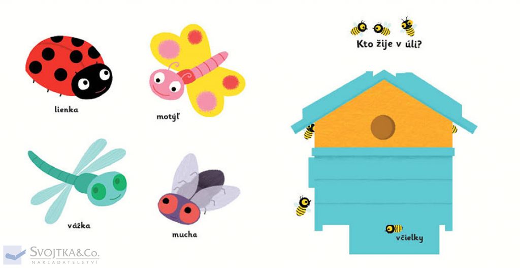 Kto žije v úli? Kto tká pavučinu? Kto má rád lieskové oriešky? Kto má pichliače? Stačí len vložiť prštek do správneho otvoru, zľahka posunúť alebo otočiť v smere šípky a hneď bude váš malý objaviteľ alebo objaviteľka poznať odpovede. Leporelo je určené pre najmenšie deti od jedného roka, má pevné stránky s posuvnými prvkami, a tak si naši najmenší môžu pri prezeraní a pomenúvaní precvičiť aj jemnú motoriku. Knižka s prvkami Montessori.