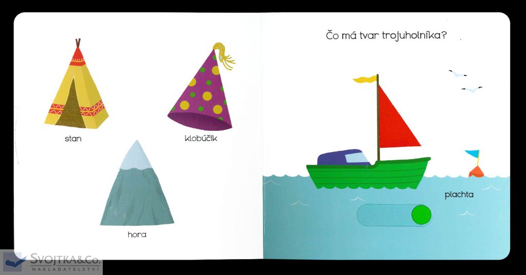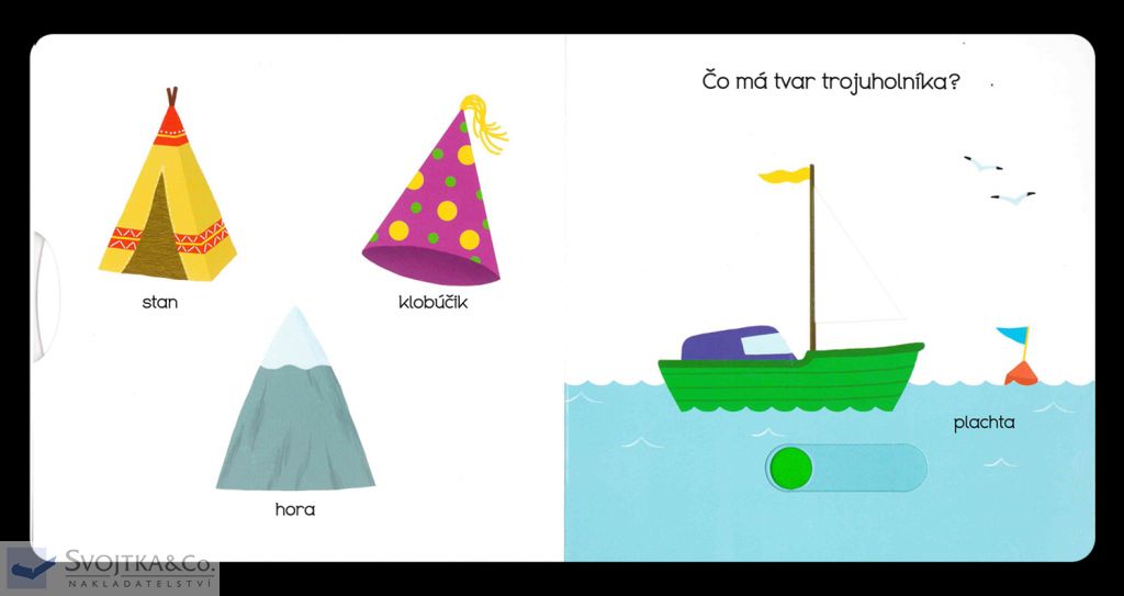 Vieš, čo to sú tvary? Aký tvar má lietajúci papierový šarkan? Nauč sa poznávať tvary jednotlivých predmetov! Čo je guľaté? Čo má tvar štvorca? A čo trojuholníka? Všetky základné tvary objavíš v tomto leporele s pestrými ilustráciami. Knižka je vhodná pre najmenšie deti, ktoré si vďaka nej precvičia jemnú mototriku – obsahuje totiž veľké množstvo najrôznejších pohyblivých častí a okienok, ktoré obrázky oživujú.