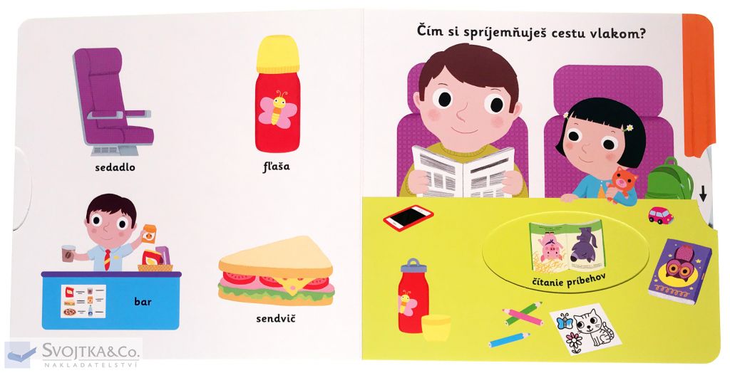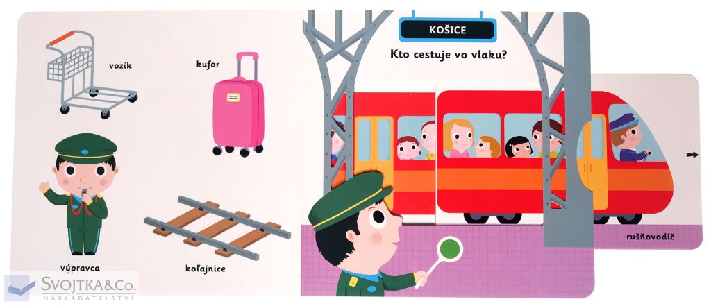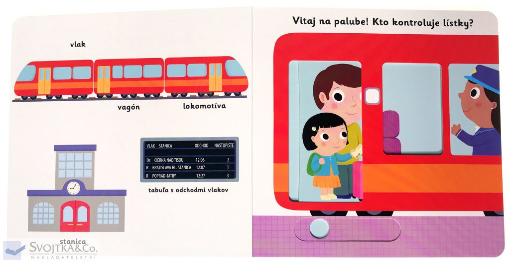 Objavovať svet vlakov a stanice je také zábavné! Vieš, čo je to vlaková súprava a z čoho sa skladá? Čo presne robí ten pán v čiapke a ukazovadlom na nástupišti? Vieš, aký je rozdiel medzi príchodmi a odchodmi? Toto a ešte viac sa dozvieš v tomto úžasne zábavnom leporele. Leporelo je určené pre najmenšie deti od jedného roka a má pevné stránky s posuvnými a otočnými prvkami, a tak si naši najmenší môžu pri prezeraní a rozoznávaní rôznych predmetov z prostredia vlakov a stanice precvičiť aj jemnú motoriku.
