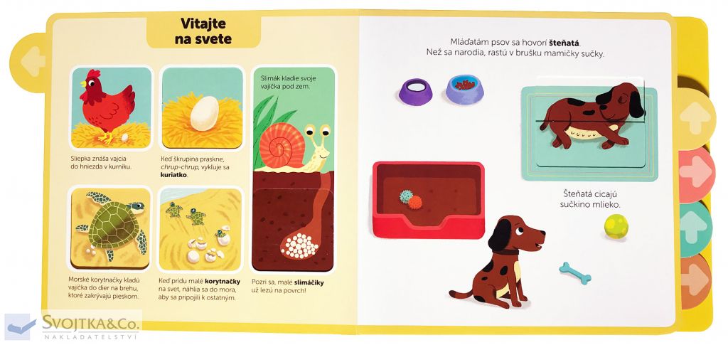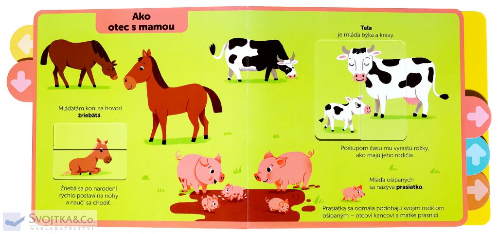 Aké zvieratká prichádzajú na svet z vajíčka? Vieš, ako sa hovorí mláďatám koní a psíkov? Ako asi vychovávajú svoje mláďatá levy králi zvieracej ríše? Na stránkach tohto leporela s pohyblivými prvkami sa zoznámiš s najrôznejšími mláďatami. Sú zvedavé rovnako ako tie ľudské! A rýchlo sa učia. Si rovnaký alebo rovnaká? Tak rýchlo, otvor knižku a zoznám sa so všetkými priateľskými tvormi, ktoré na teba na jej stránkach čakajú.