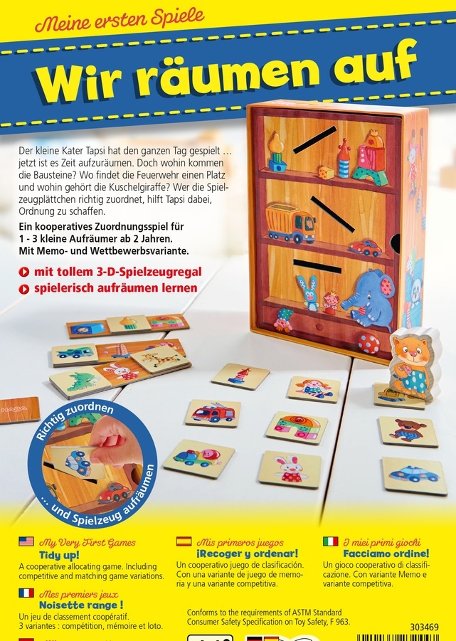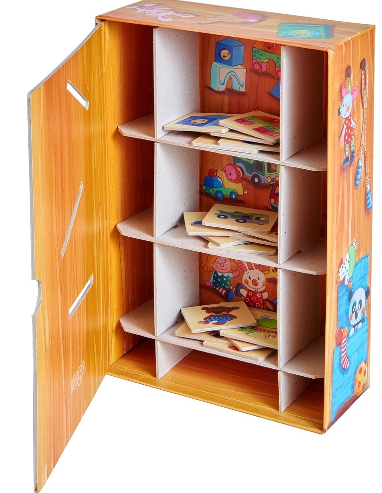 Malý kocúrik Tiptop sa hrá celý deň. Teraz je čas na upratovanie! Ale kam umiestniť jednotlivé kartičky? Kde patrí požiarna stanica? A kam žirafa? Rozprávajte sa s dieťaťom, kde obrázok na kartičke patrí a potom požiadajte dieťa, aby vložilo kartičku do správneho priečinka. Hra rozvíja spoluprácu (diskusia, kde čo patrí), koordináciu (vloženie kartičky do otvoru) a zároveň podporuje v dieťati zmysel pre poriadok. Možno si potom takto uprace aj hračky v izbičke:-) Pre deti od 2 rokov