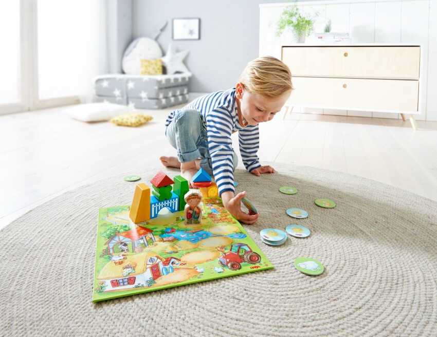 10 prvých hier s tematikou statku ponúka zábavu pre 1 až 3 hráčov už od 2 rokov. Každá z hier trvá približne 5 minút, čo je ideálne pre udržanie pozornosti malých detí. Táto všestranná herná kolekcia obsahuje rôznorodé aktivity ako domino, kocky, pexeso a mnoho ďalšieho herného materiálu z dreva a kartónu. Deti prostredníctvom hry objavujú život na farme, rozvíjajú svoje zručnosti a učia sa základné herné princípy. Vďaka 10 herným variantom si precvičia rozpoznávanie farieb a tvarov, hádzanie kockou, stavanie aj skladanie. Hra prirodzenou formou podporuje rozvoj dôležitých schopností ako sú jemná motorika, koordinácia ruka-oko, schopnosť sústredenia či prvé počtové zručnosti. V návode nájdete aj praktické tipy, ako s dieťaťom objavovať možnosti herného materiálu. 10 rôznych hier – ideálne pre prvé herné zážitky detí od 2 rokov Rozvíja jemnú motoriku, koordináciu a schopnosť pozorovania Obsahuje domino, kocky, pexeso a ďalší herný materiál z dreva a kartónu Podporuje učenie hrou – jednoduché pravidlá, krátka herná doba Vyrobené v Nemecku – vysoká kvalita spracovania Rozmery balenia: 35,5 x 35,5 x 7,3 cm Obsah balenia: 1 obojstranná herná doska (strany: „Cesta farmára Nilsa“ a „Na zelenej lúke“) 1 drevená figúrka farmára Nilsa 1 kocka s farbami/symbolmi 8 stavebných kociek (1 most, 1 kocka, 2 šikmé kocky, 1 štvorlístok, 2 strechy, 1 disk) 15 dominových dielikov 12 guľatých dielikov so slniečkom 12 štvorcových dielikov so zvieratkami 1 pravidlá hry Odporúčaný vek: od 2 rokov