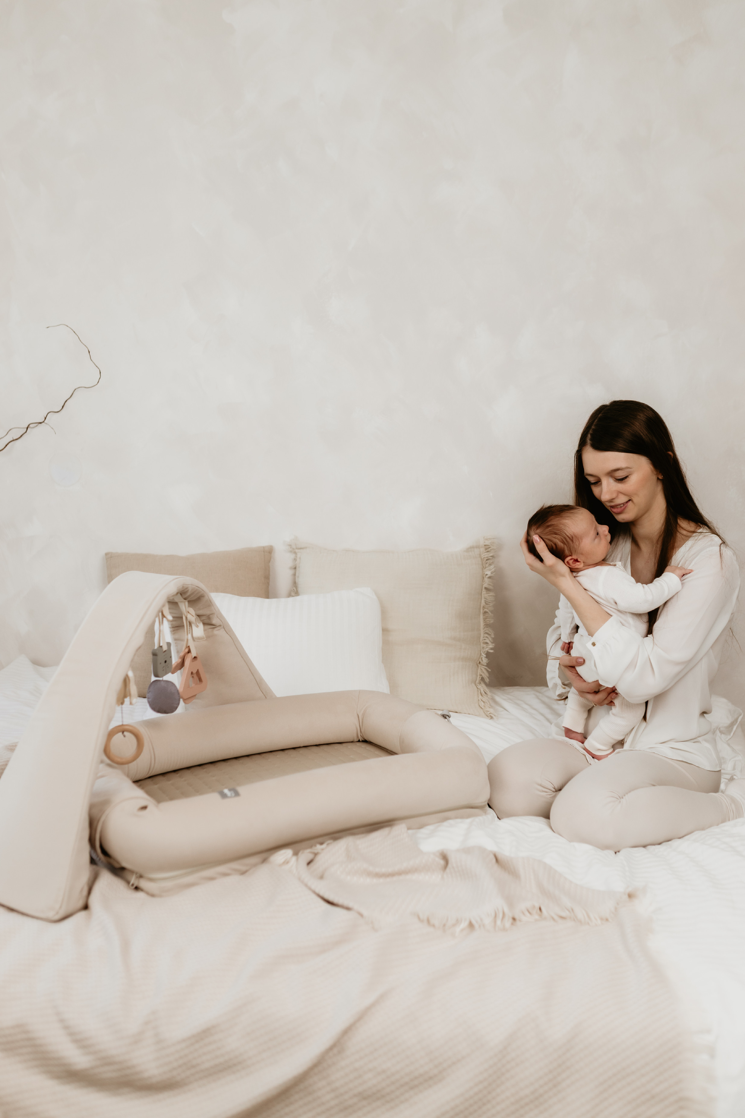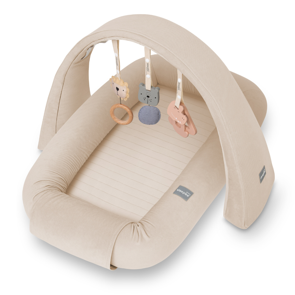 Sleepee Multifunkční hnízdečko pro miminko s hrazdičkou a hračkami 3 v 1 Sleepee Sand