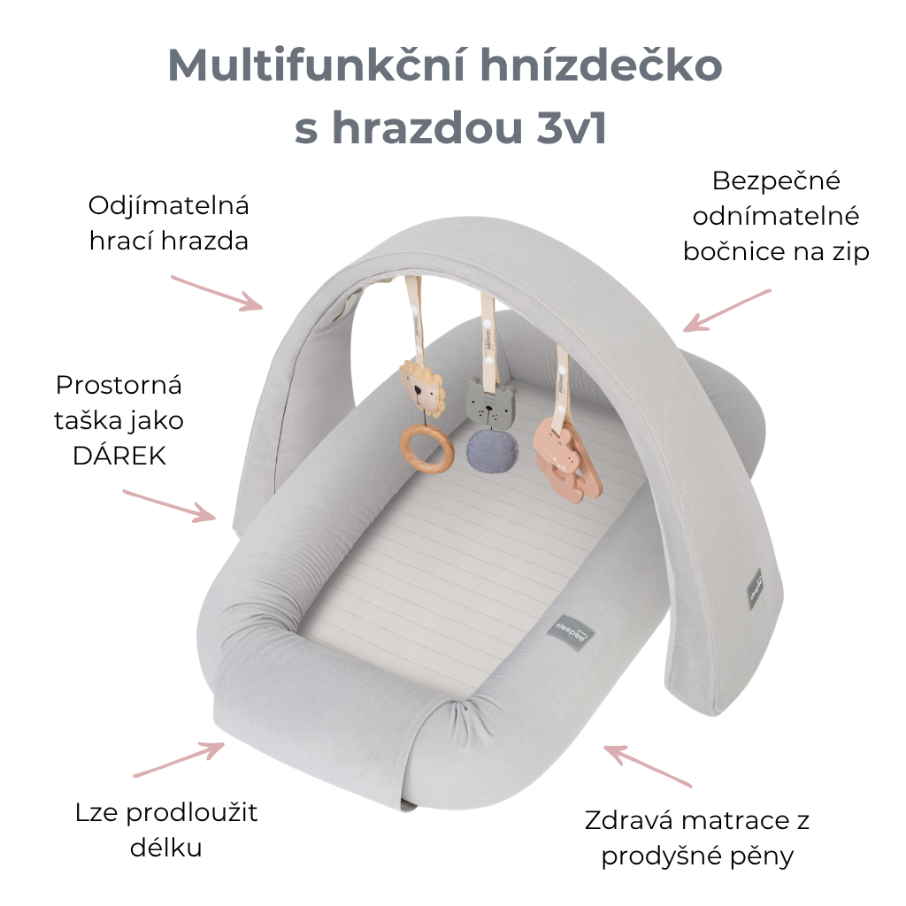 Multifunkční hnízdečko pro miminko s hrazdičkou a hračkami 3 v 1 Sleepee Sand