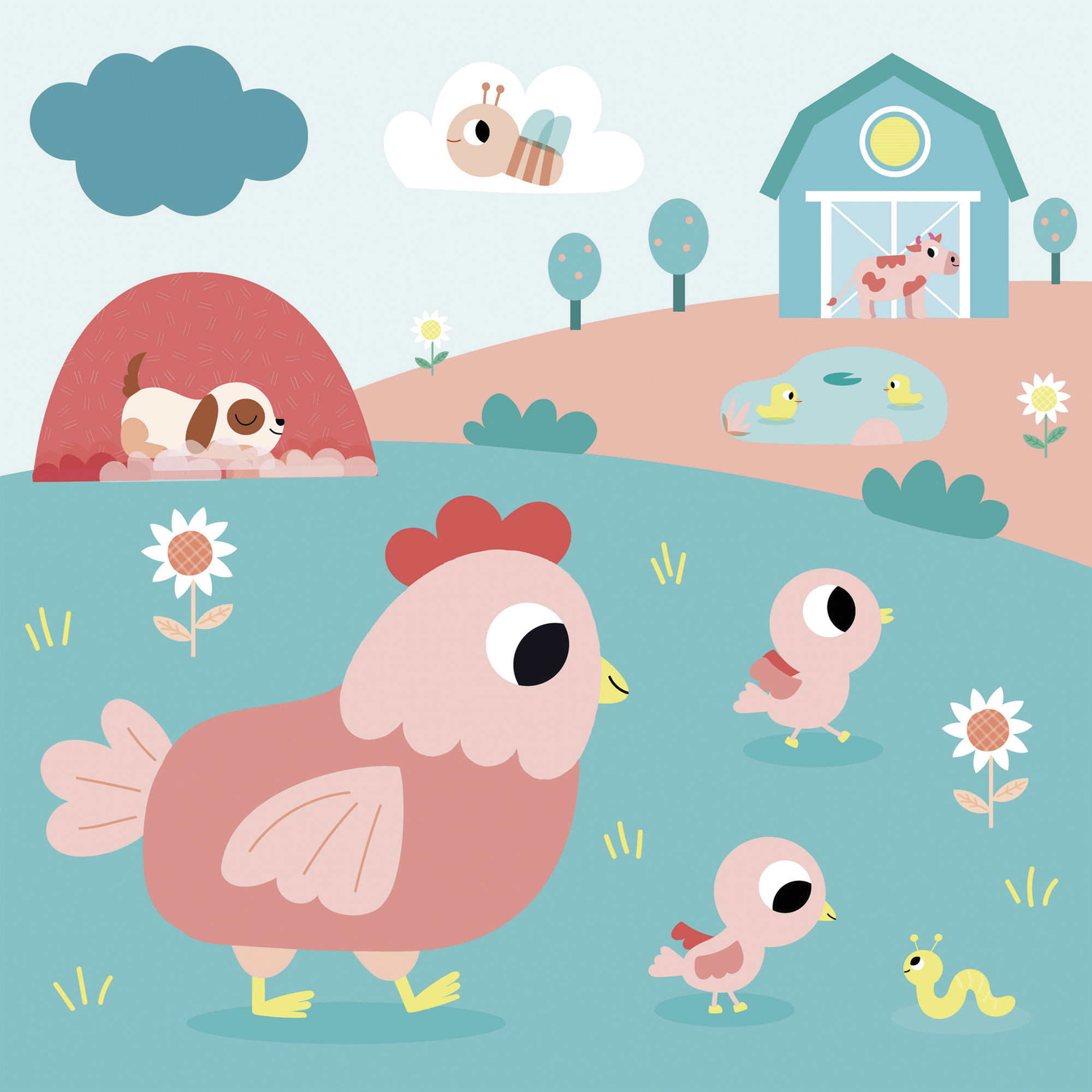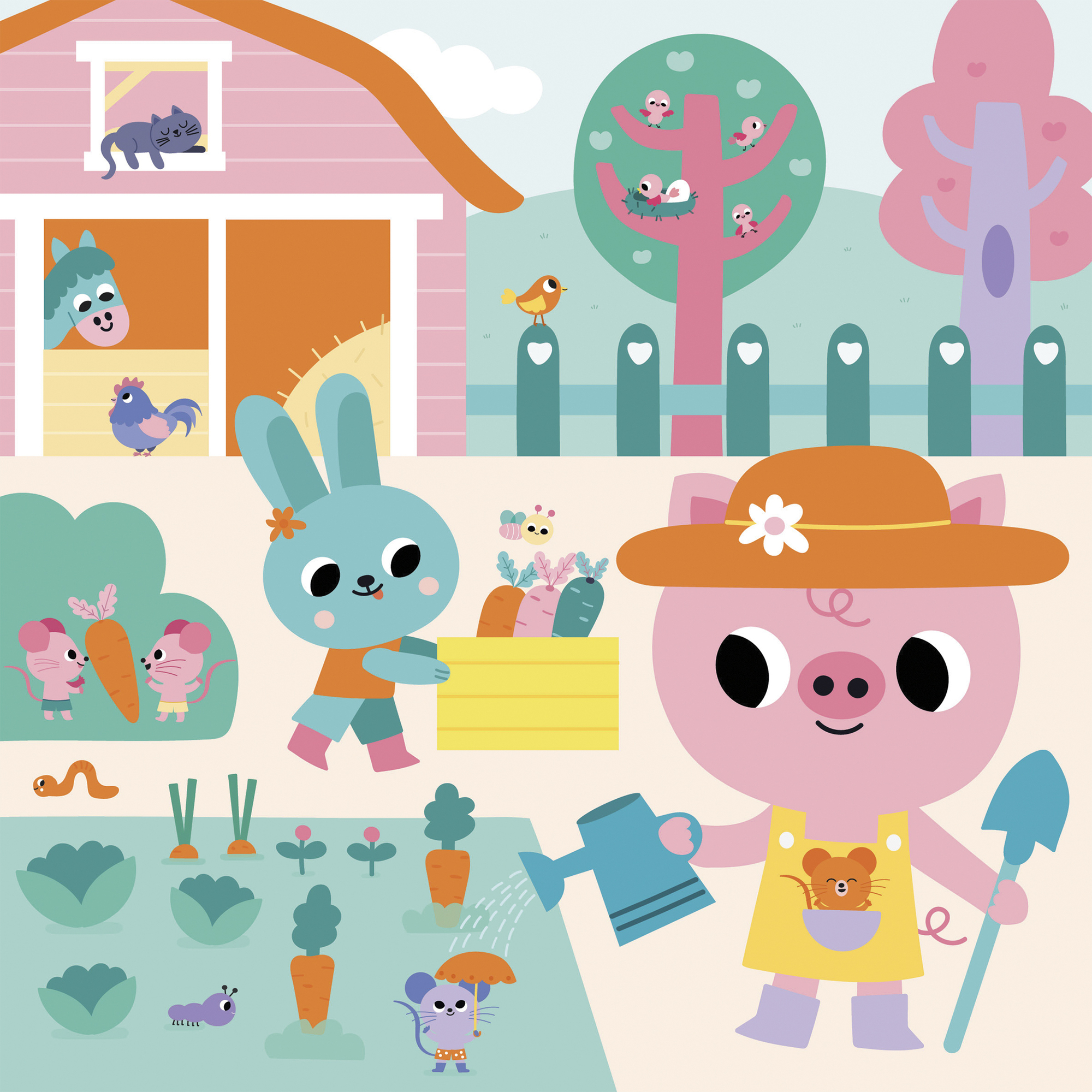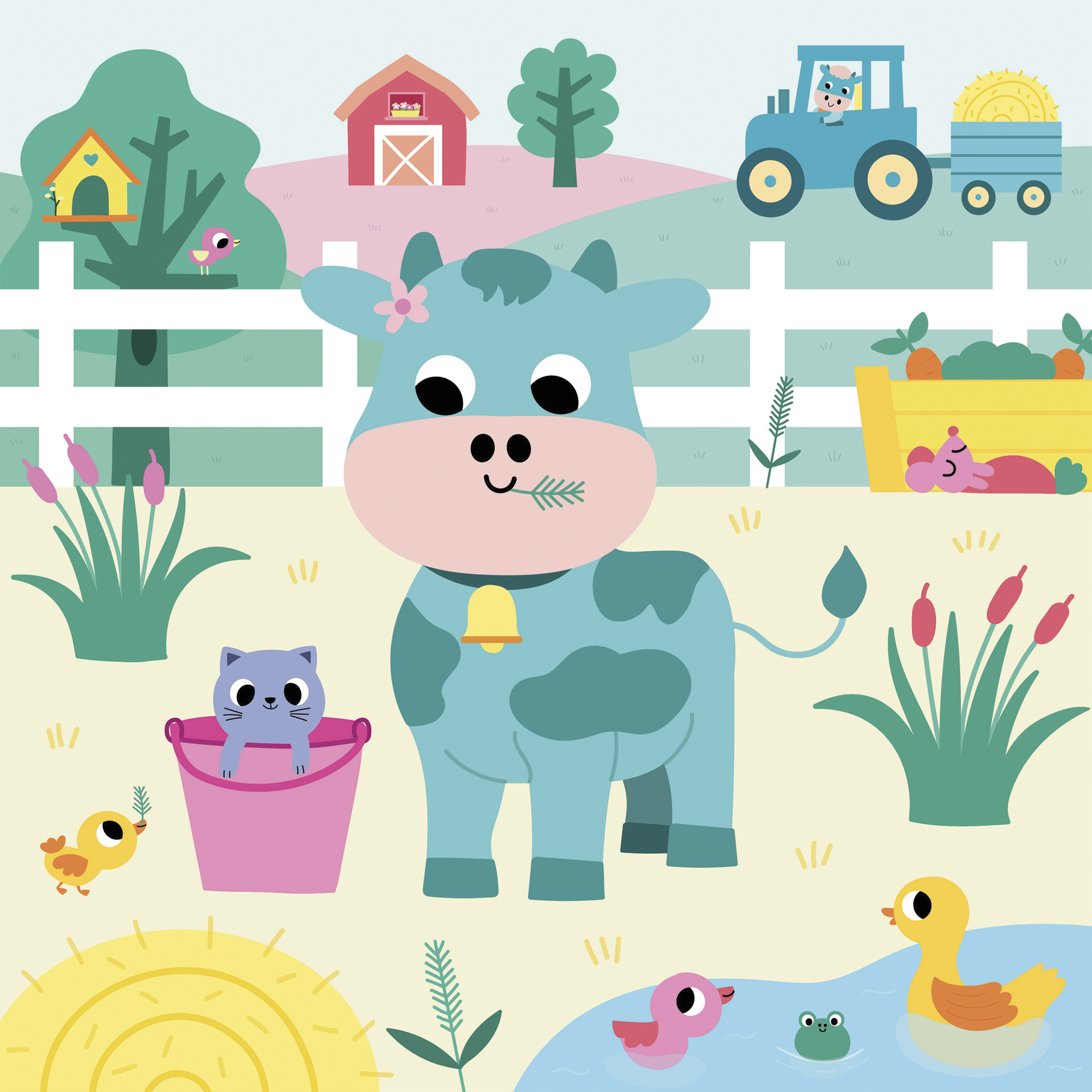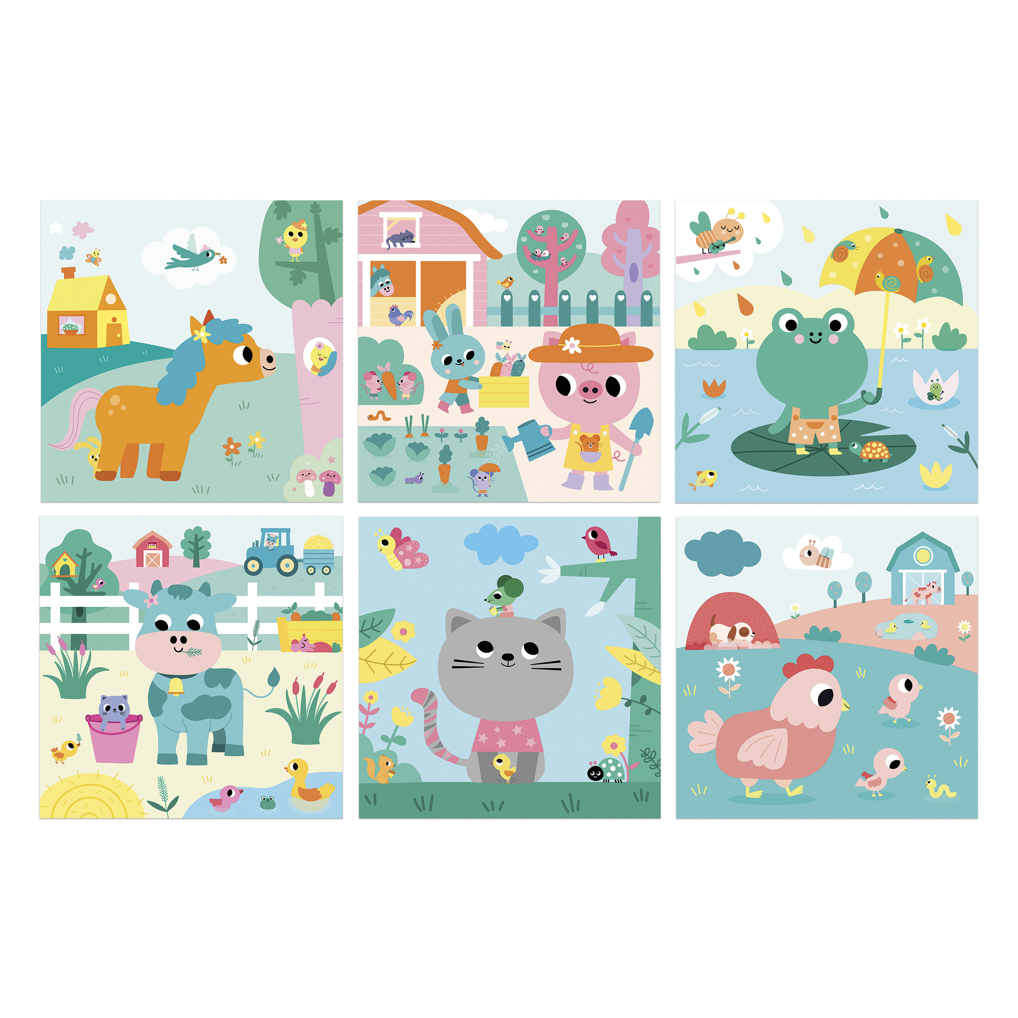 Táto sada na tvorenie zahŕňa vyfarbovanie obrázkov s farmárskou tematikou vodným perom. Obsahuje 3 obojstranné tabule, napr. 6 scén, ako aj vodné pero a leták s pokynmi a vzormi. Obrázky sú farebné s bielymi plochami. Farby sa objavia vo vode a pri schnutí blednú. Umožňuje deťom začať odznova! Táto aktivita pomáha rozvíjať jemnú motoriku a trpezlivosť. Trvá približne 20 minút (kým obrázky zaschnú a budú opäť použiteľné) a je ideálna pre deti vo veku 18 mesiacov a viac.