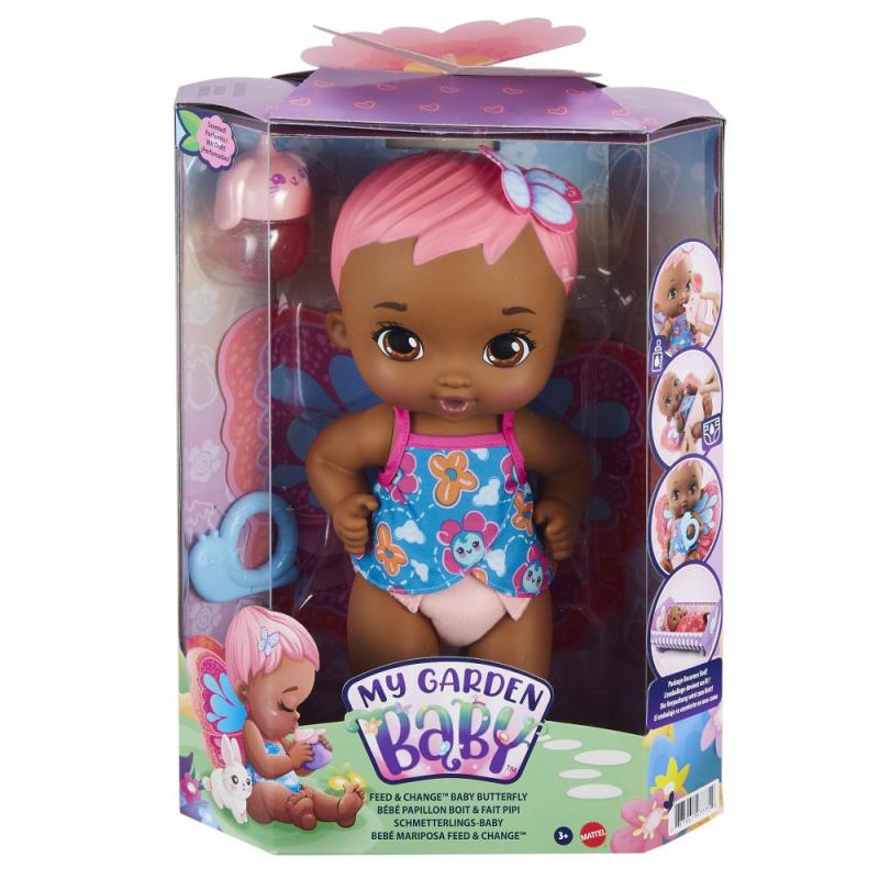Tieto herné sety bábik My Garden Baby™ ponúkajú rôzne spôsoby starostlivej hry! Deti môžu kŕmiť a prebaľovať motýlie bábätká (stačí naplniť fľašu vodou, nakŕmiť bábätko a potom vymeniť opakovane použiteľnú plienku). Alebo pomáhať zajačím bábätkám čistiť zuby a sledovať, ako sa ich hlavičky pohybujú zo strany na stranu. Bábätká motýlikov a zajačikov My Garden Baby™ majú hebučké krídla a ušká, ktoré sa dajú zavinúť a potom sa k nim pritúliť!