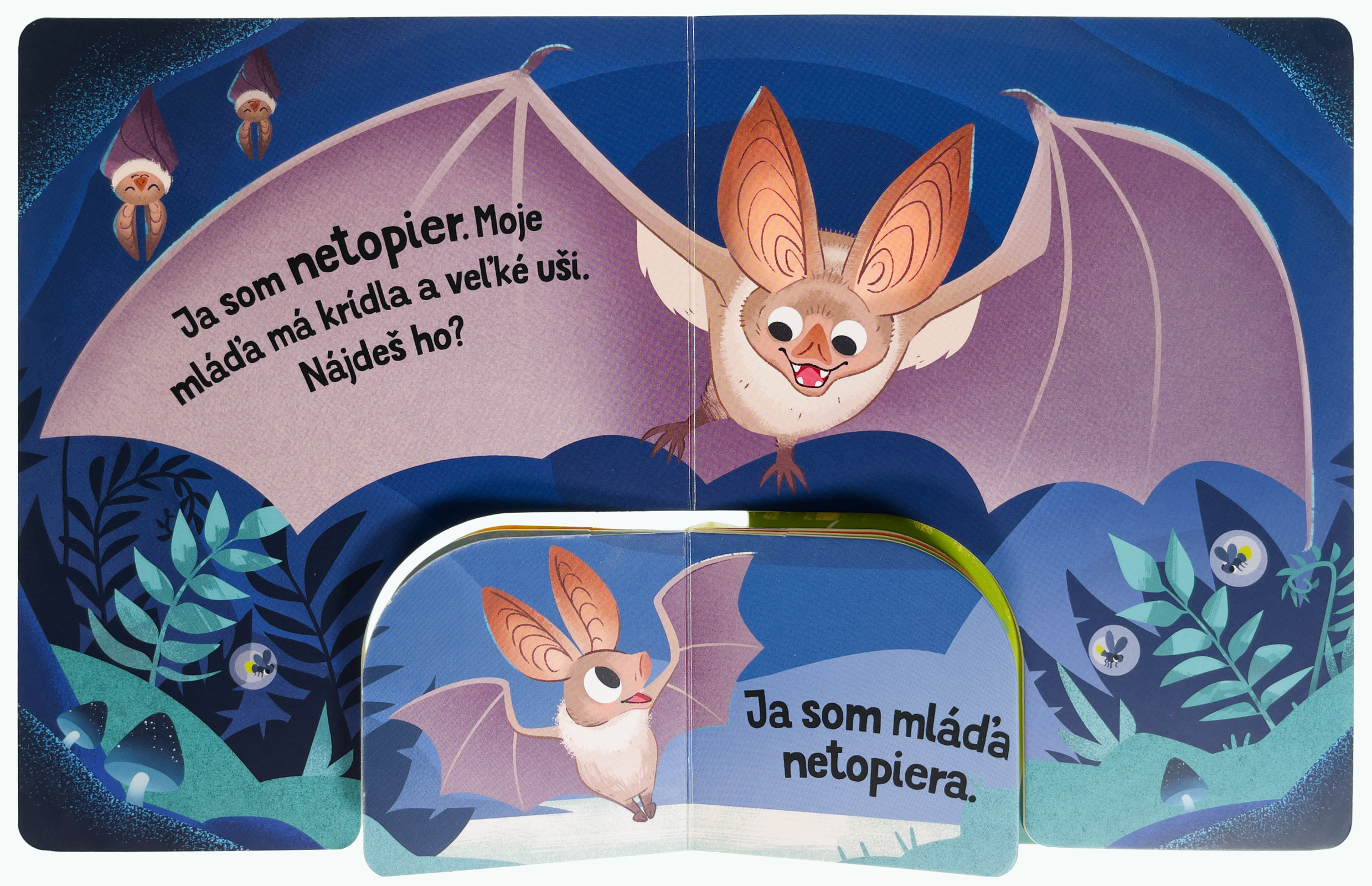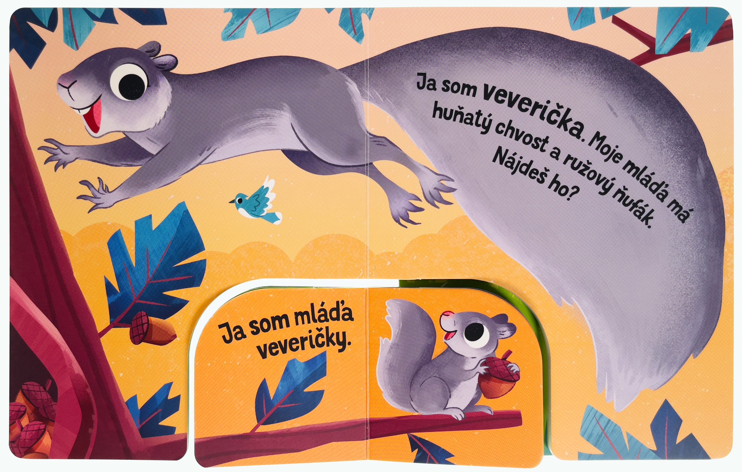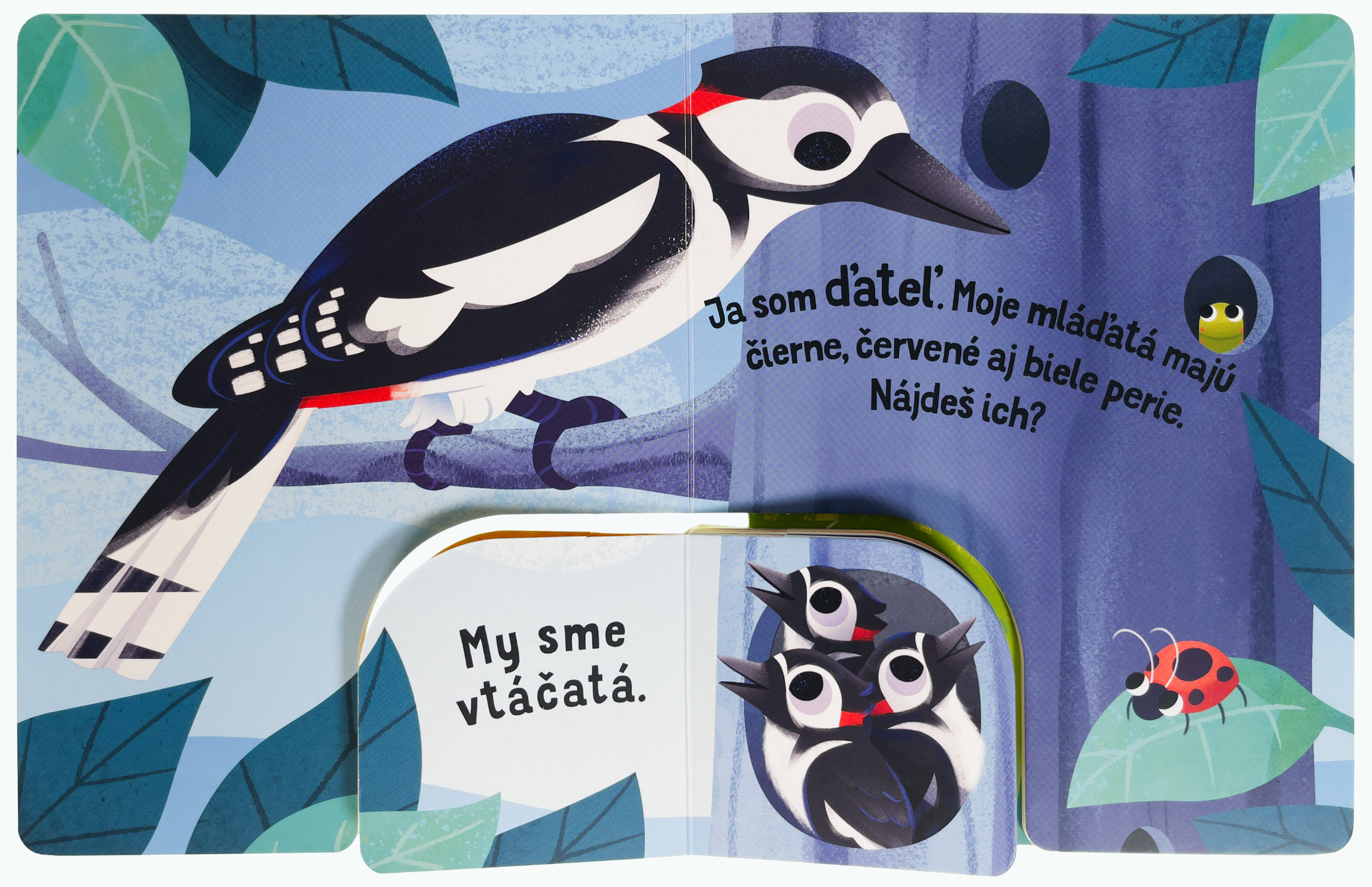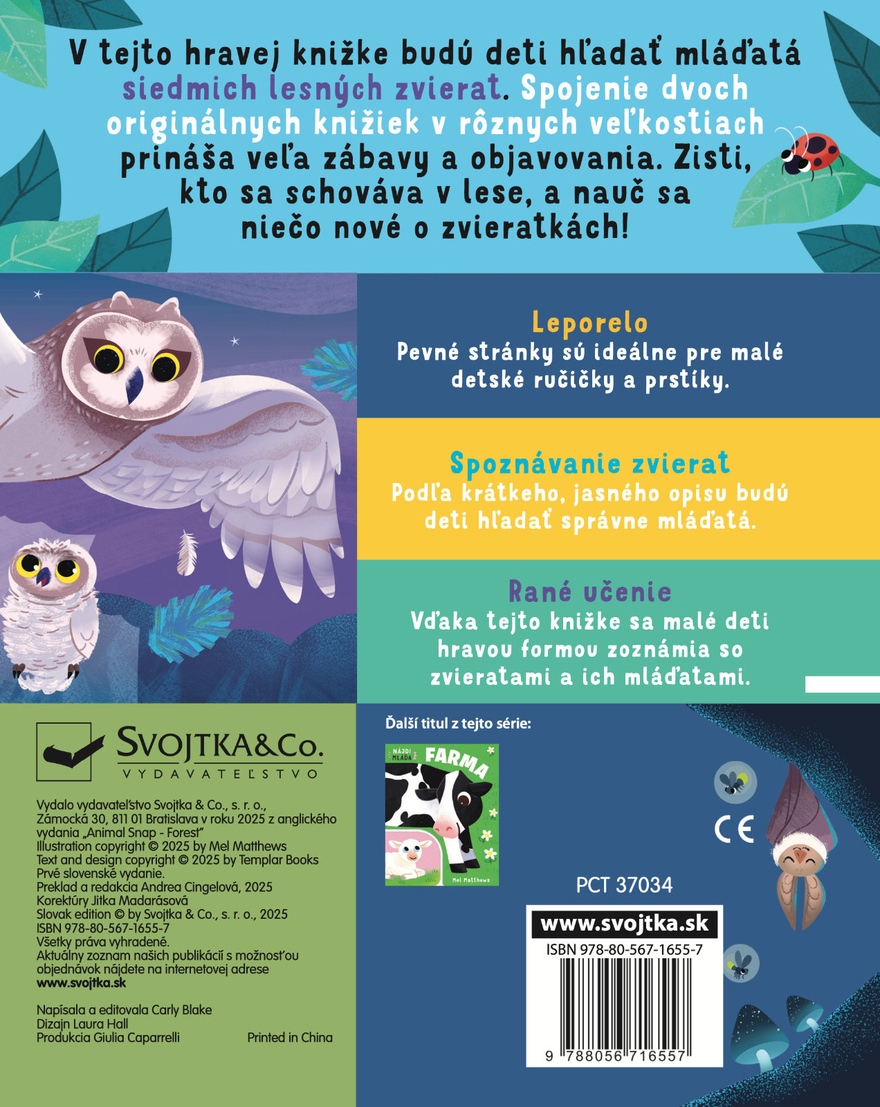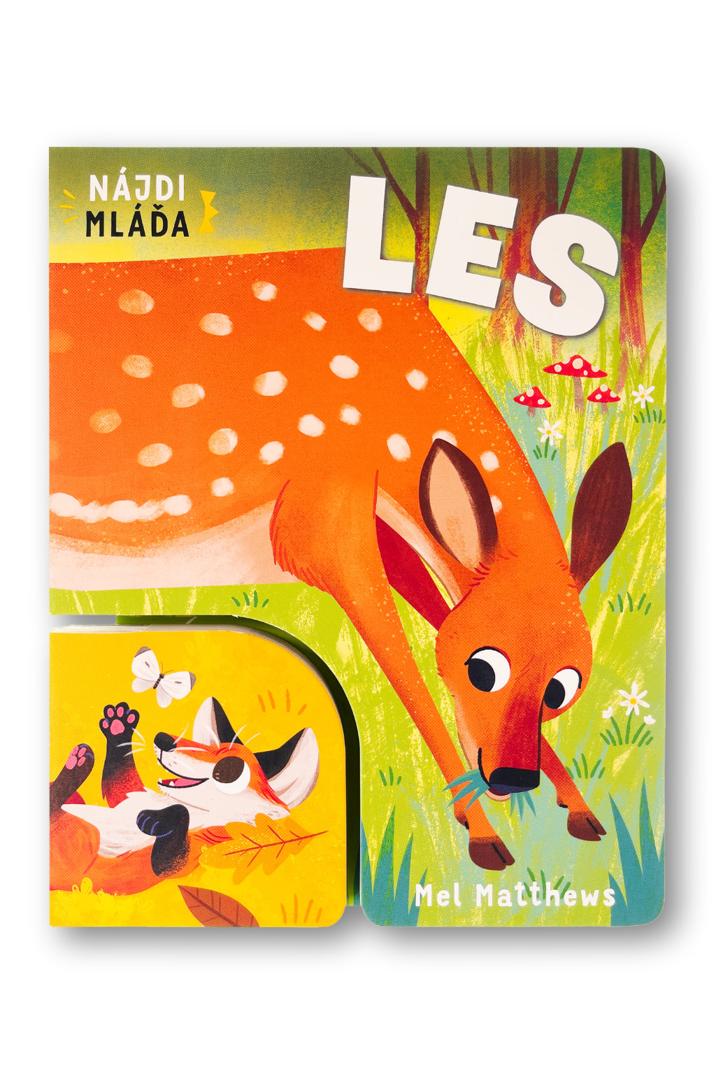 V tomto originálne spracovanom leporele čaká na deti zábava aj spoznávanie. Vďaka prepojení dvoch leporel rôznych veľkostí budú deti na základe jasného a krátkeho popisu hľadať správne mláďatá zvierat z lesa. Pevné stránky sú ideálne pre malé ručičky a robia z tejto knihy perfektného spoločníka na jedno z prvých zoznámení sa so svetom zvierat. Malé deti si precvičia jemnú motoriku a pršteky, spoznajú prvé slovíčka a zoznámia sa so zvieratami a ich mláďatami.Počet strán: 14