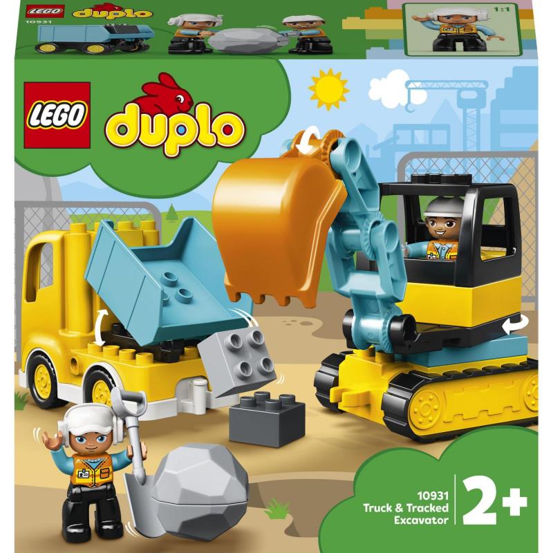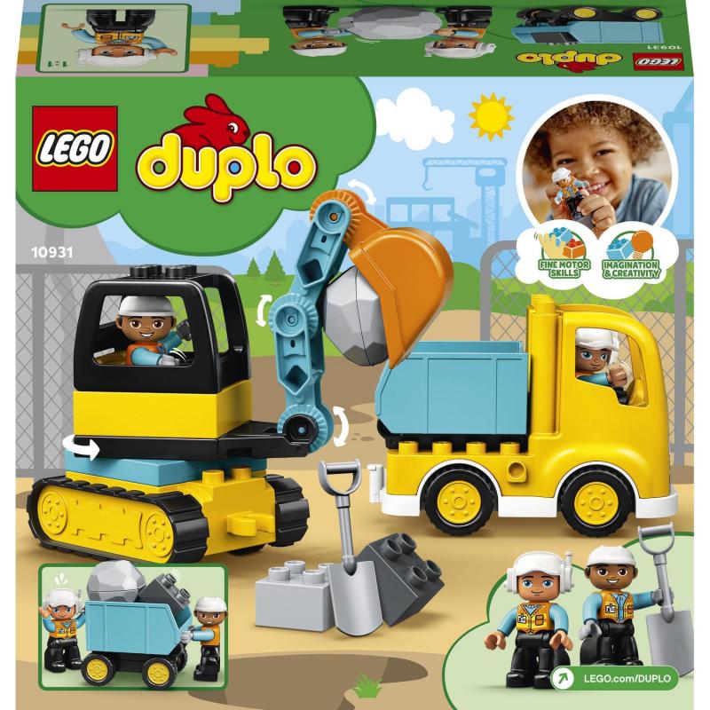 Stavebnica LEGO® DUPLO® Nákladiak a pásový bager (10931) podnecuje u malých staviteľov túžbu objavovať nekonečné možnosti hry bez hraníc. Pri nápaditom hraní scénok zo staveniska s nákladiakom, rýpadlom a 2 robotníkmi na stavbe sa u batoliat rozvíjajú cenné fyzické a kognitívne schopnosti, ktoré pretrvajú celý život. Hračka z prostredia staveniska s vozidlami a robotníkmi Batoľatá majú s rodičmi k dispozícii všetko, čo potrebujú na to, aby splnili úlohu – 2 figúrky robotníkov na stavbe, nákladiak s vyklápacou funkciou a bager s otočným rýpadlom. Kým deti s vozidlami jazdia a manévrujú, čakajú ich na stavenisku rôzne úlohy. Zároveň sa pri tom rozvíja ich jemná motorika. Sú tu hračkárske balvany, ktoré sa dajú naložiť na nákladiak. Ale dajte si pozor, balvan sa môže ľahko roztvoriť! Aká je najlepšia stavebnica pre malé deti a batoľatá? Séria stavebníc LEGO DUPLO Construction prináša predškolákom hračky, ktoré stimulujú rozvoj a napĺňajú ich narastajúce potreby. Súpravy sa dajú kombinovať, čím sa zväčšuje rad pozitív, ktoré prinášajú.