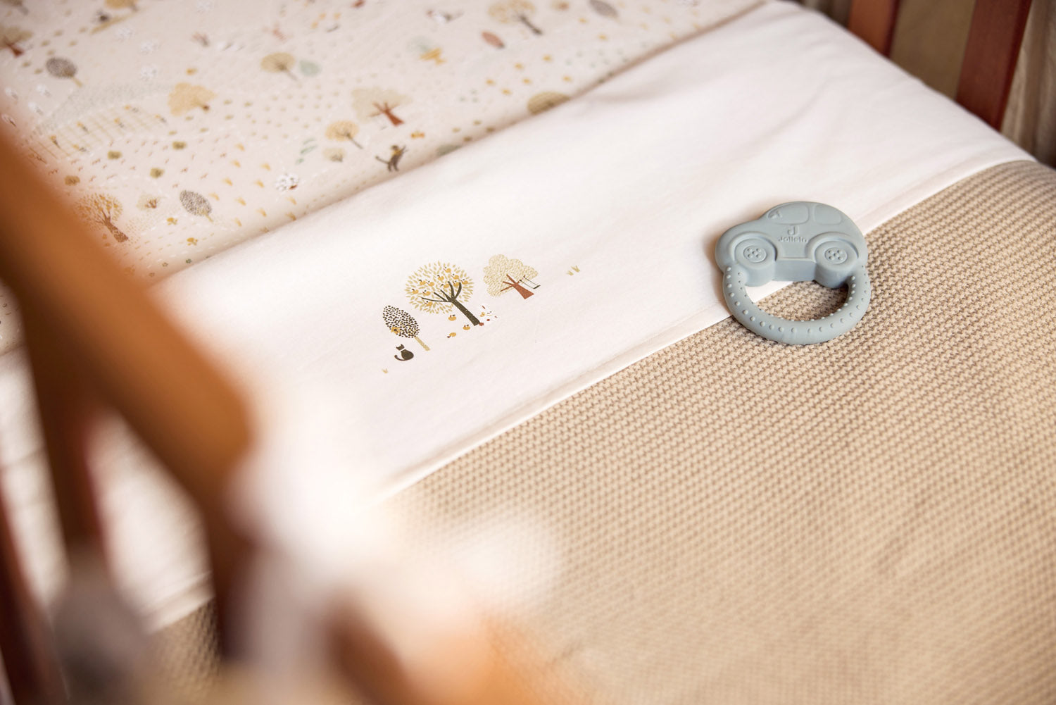 Napínacie prestieradlo do kolísky, košíka alebo prídavnej postieľky pre bábätko je vyrobené z mäkkej, jemnej 100% bavlny s krásnou potlačou pre pohodlie vášho dieťaťa.