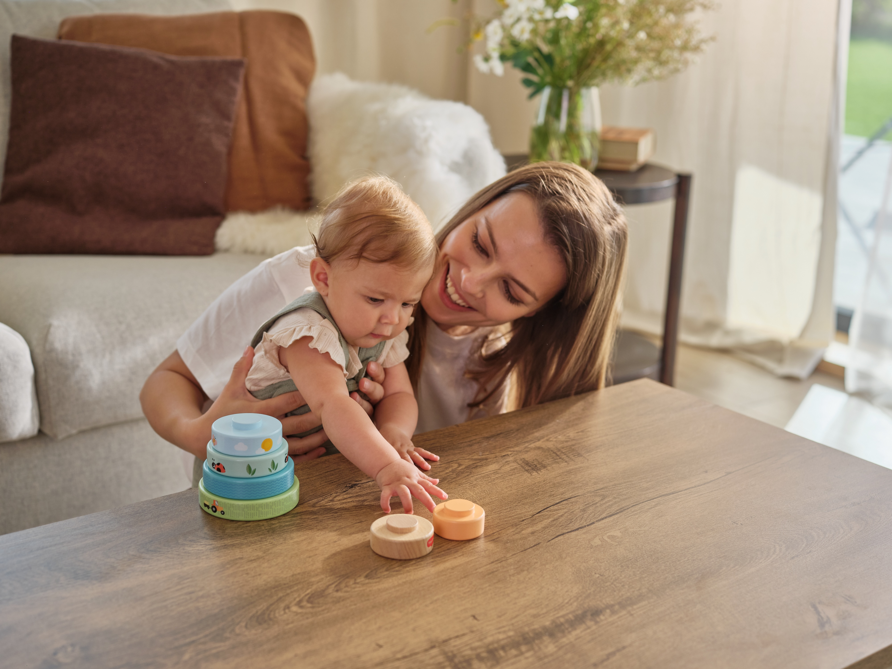 Drevené nasadzovacie krúžky Tiny Love ponúkajú rôzne možnosti hran...zobraziť viac