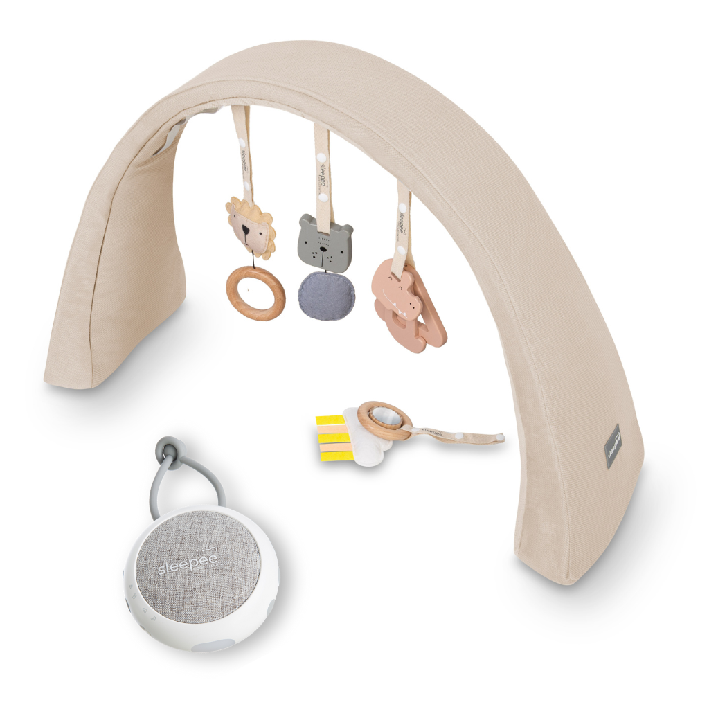 Sleepee Nastavitelná hrazdička s hračkami a bílým šumem 2v1 Sleepee Sand