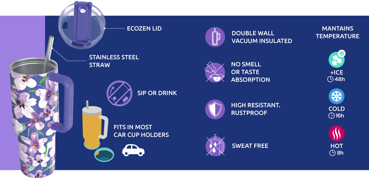 Termohrnek Quokka Stream z vysoce kvalitní dvoustěnné oceli udrží teplotu nápoje studeného s ledem až 48 hodin, studeného až 16 hodin a teplého až 8 hodin. Termohrnek s vyjímatelným nerezovým brčkem umožňuje snadné pití bez nutnosti naklánění. Spolehlivý uzávěr z kvalitního Ecozen plastu chrání obsah před vylitím a umožňuje z termohrnku pít i bez brčka. Široké hrdlo umožňuje vložení kostek ledu a zároveň se díky němu hrnek snadno čistí.